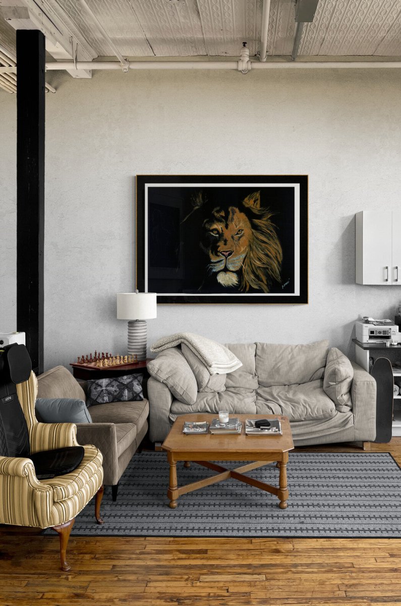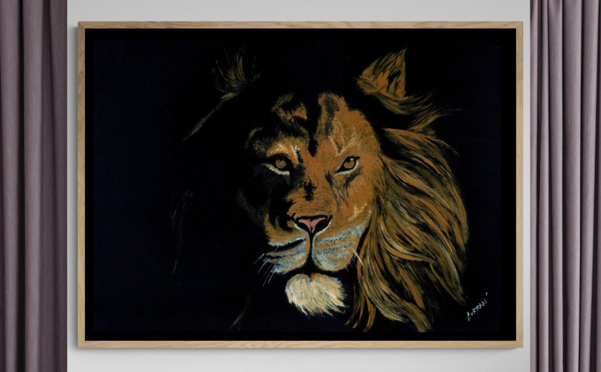 - Original hand-painted lion portraits