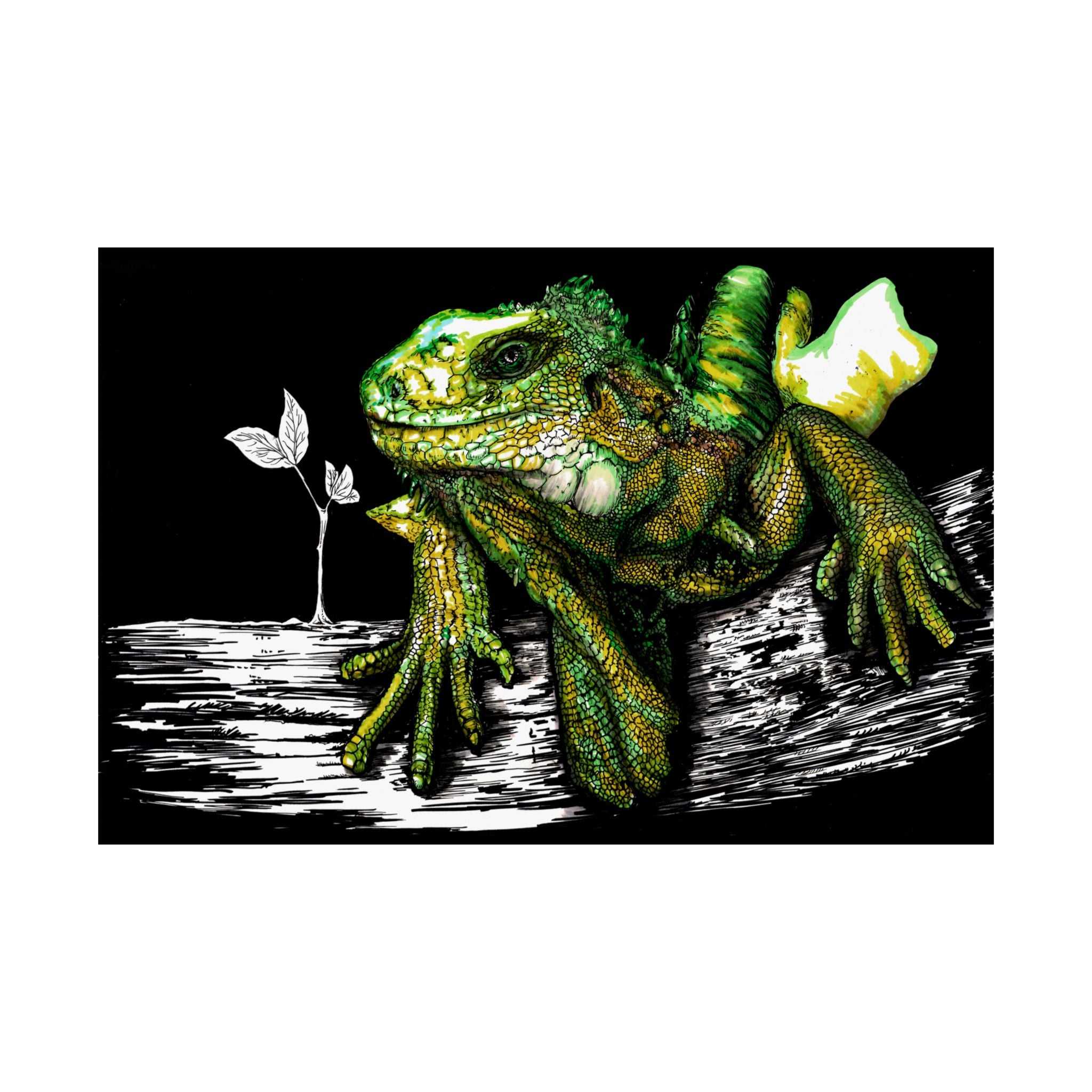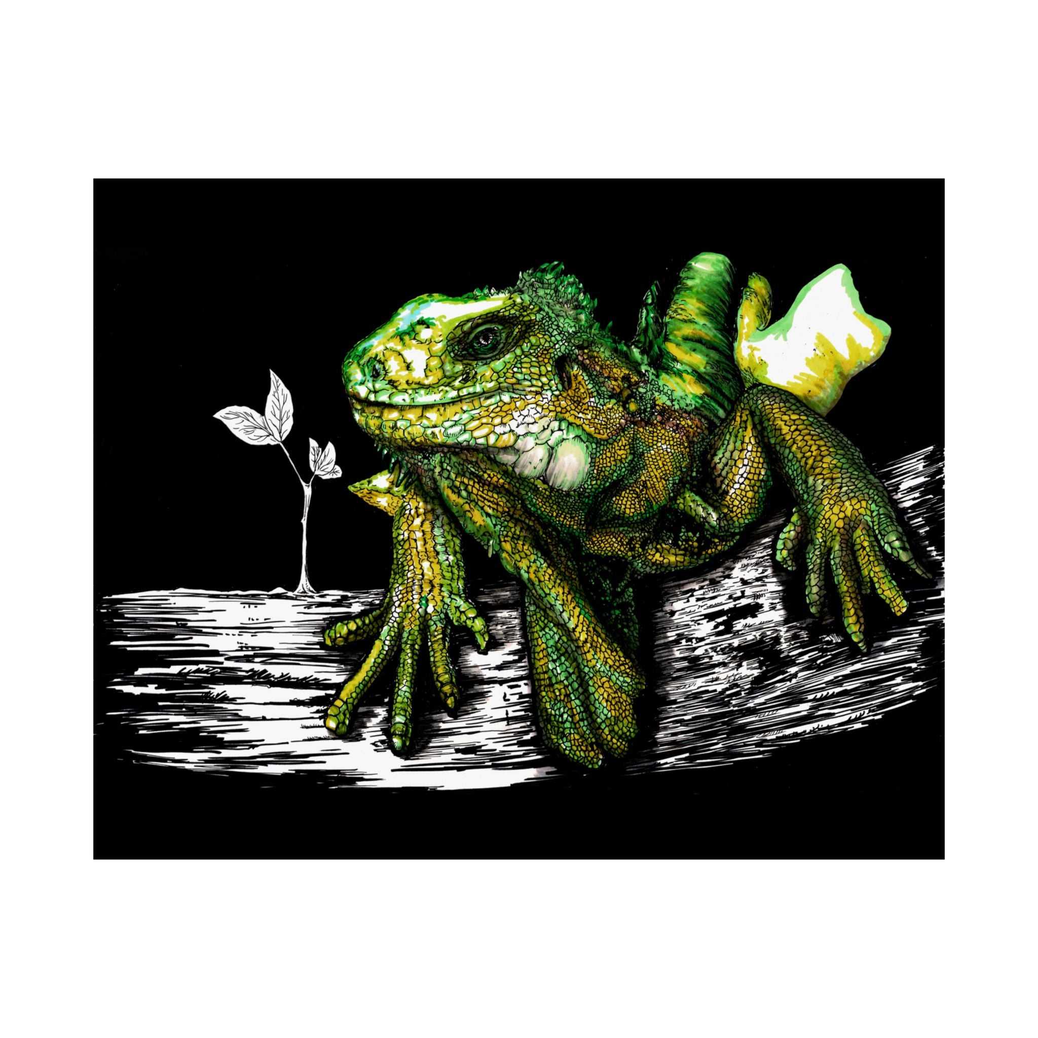 Each piece is meticulously drawn by hand by artist Kris Curran, using fine lines and shading to capture the lizard’s natural form and stealthy elegance. Whether you’re a reptile enthusiast, wildlife lover, or collector of original animal art, this collection adds a bold, earthy touch to any space.