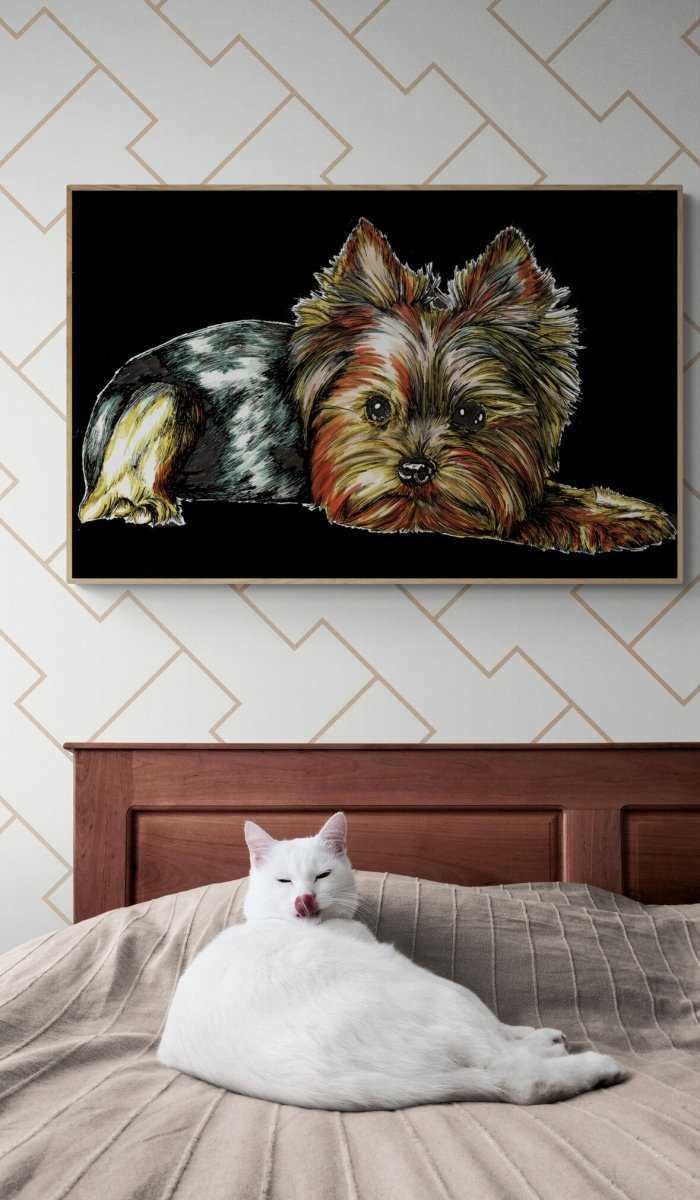 Bring warmth, personality, and the unmistakable spirit of the Yorkie Terrier into your home with Curran Artworks' hand-drawn collection. Shop now and add a touch of canine charm to your walls.