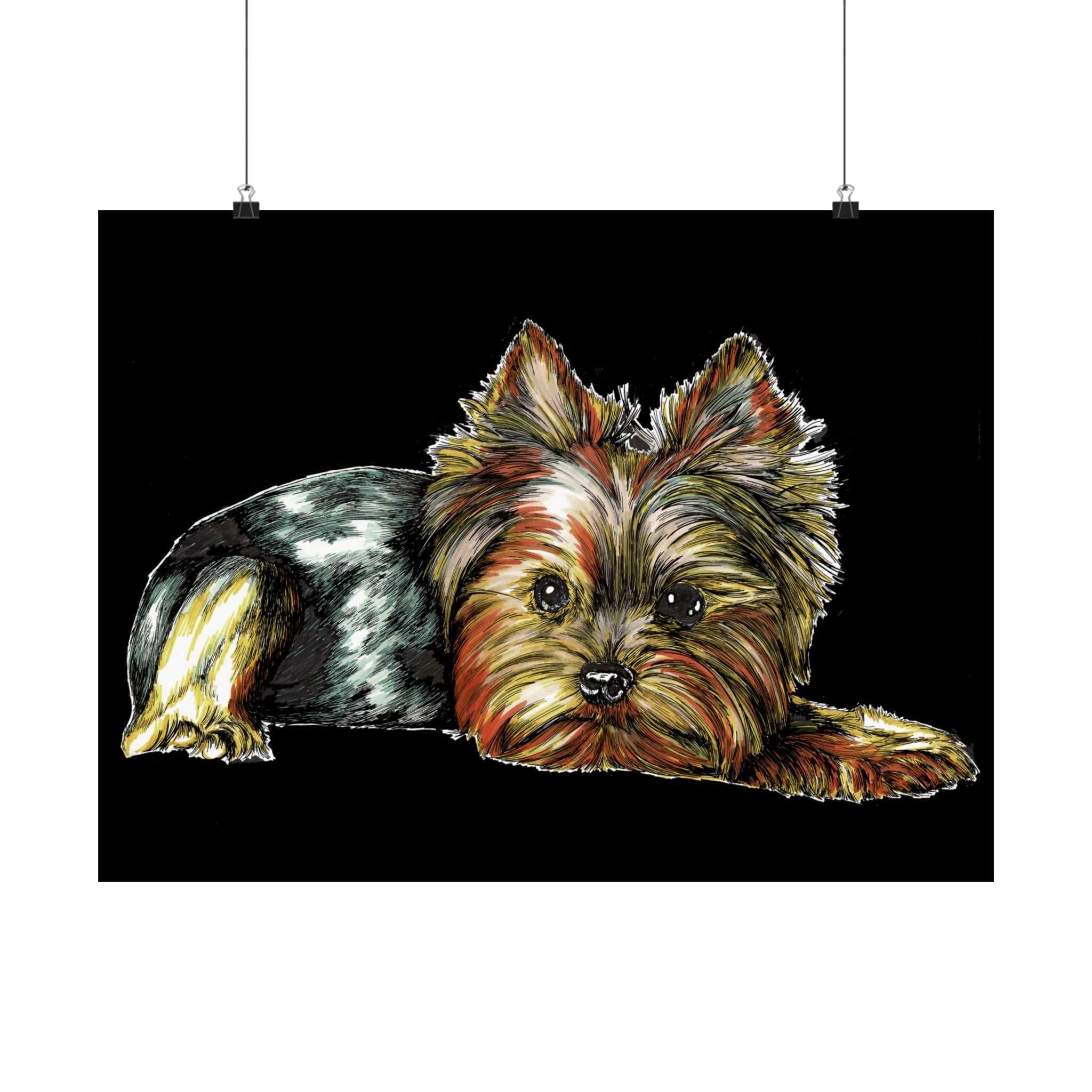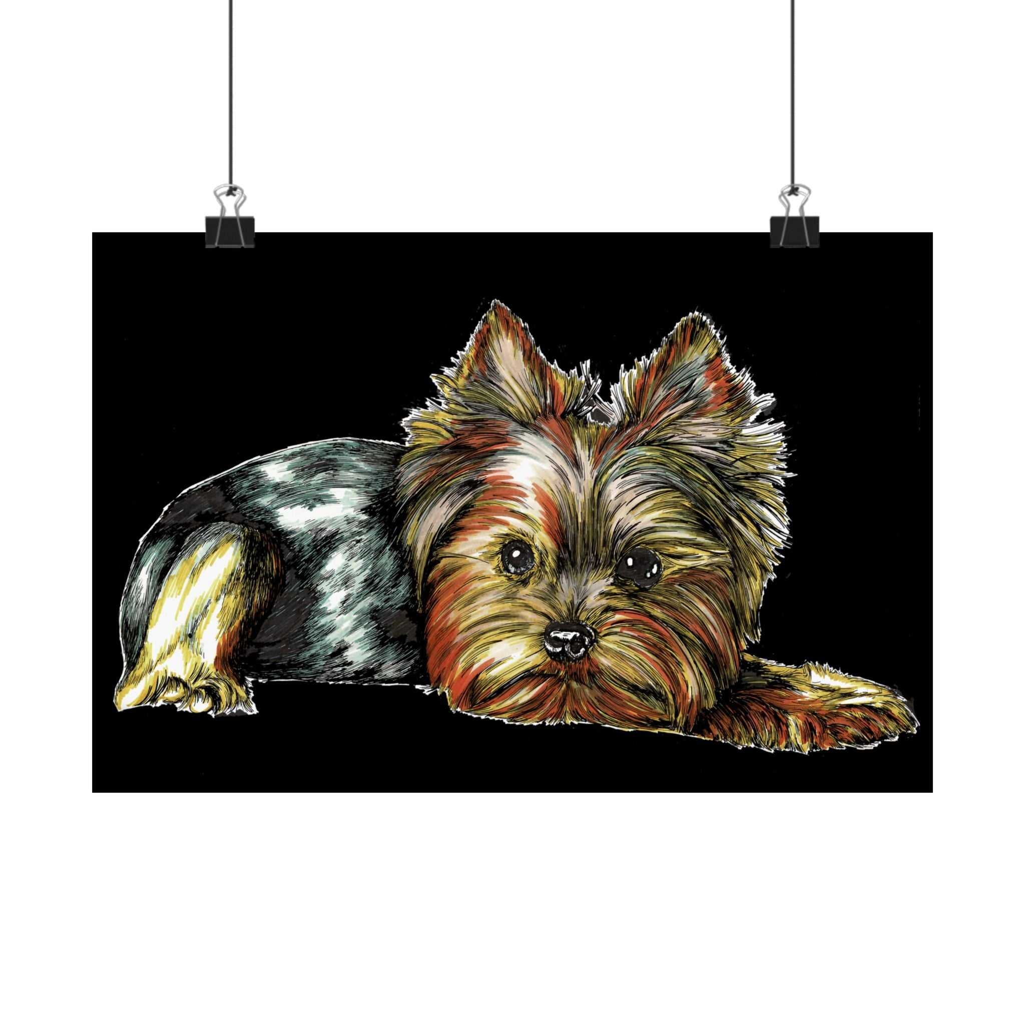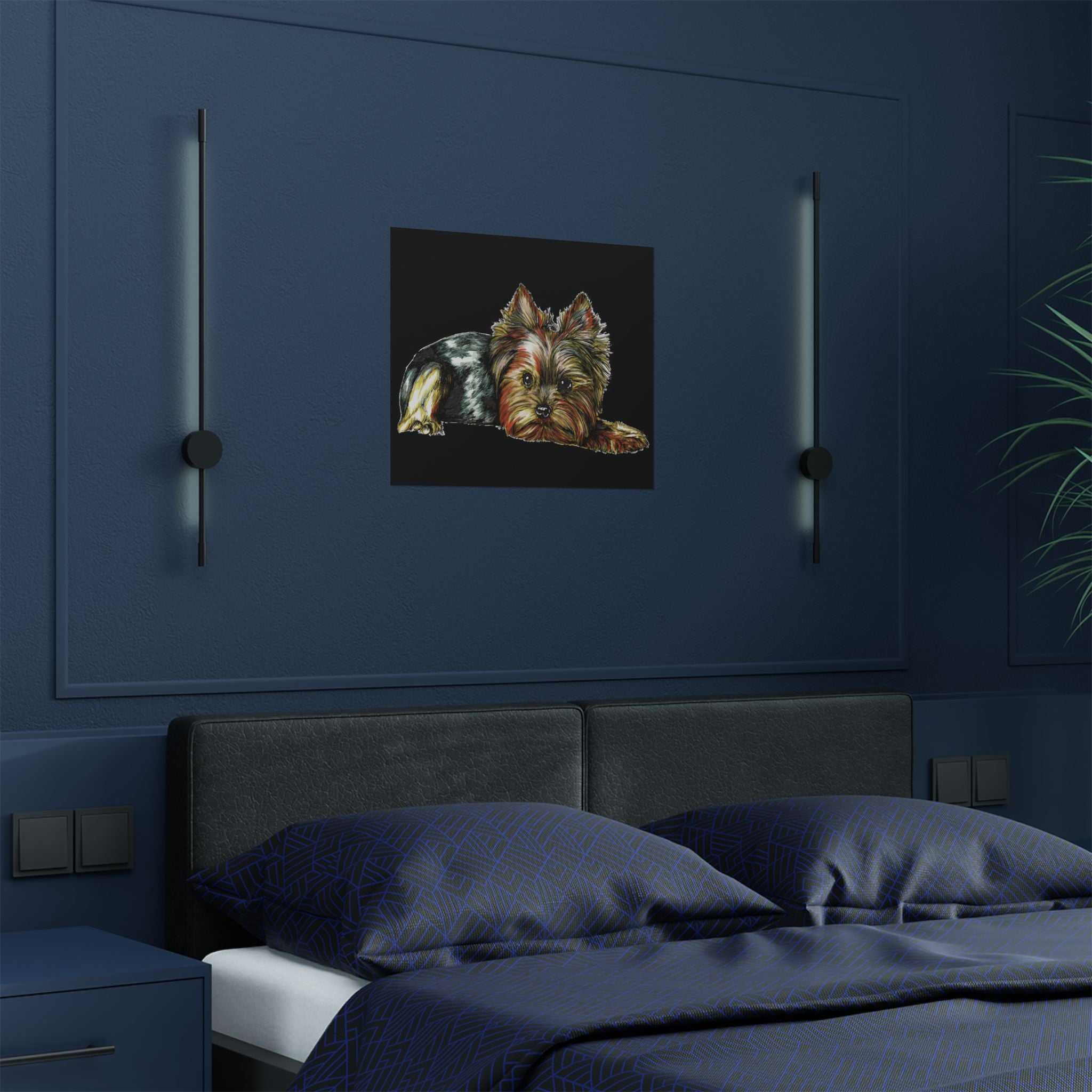 Decorate your walls with a Yorkshire Terrier Satin Poster - Perfect for Dog Lovers. A must-have for all canine enthusiasts created by Curran Artworks!