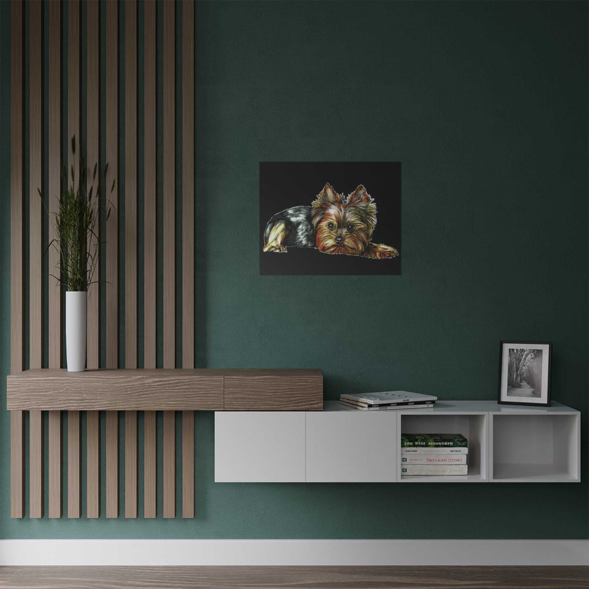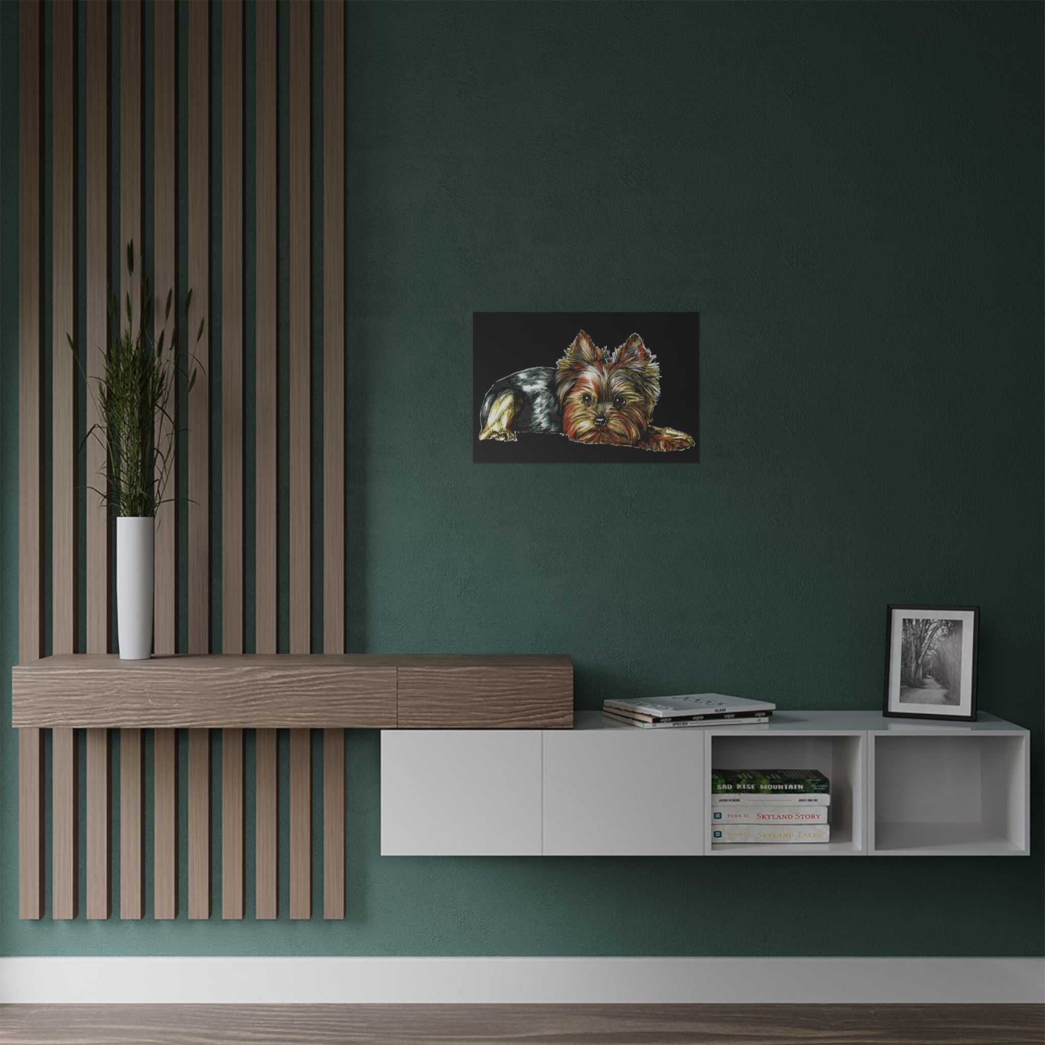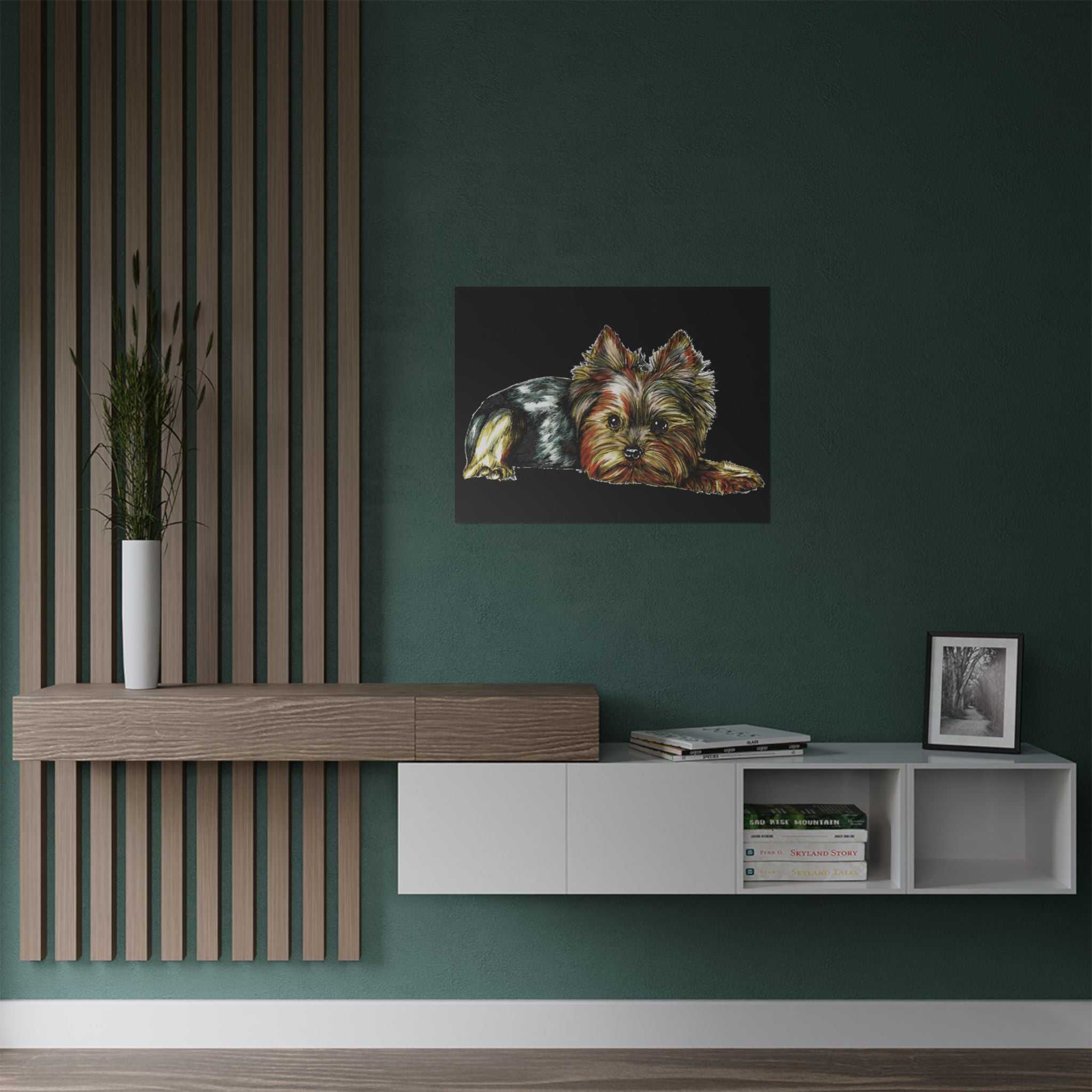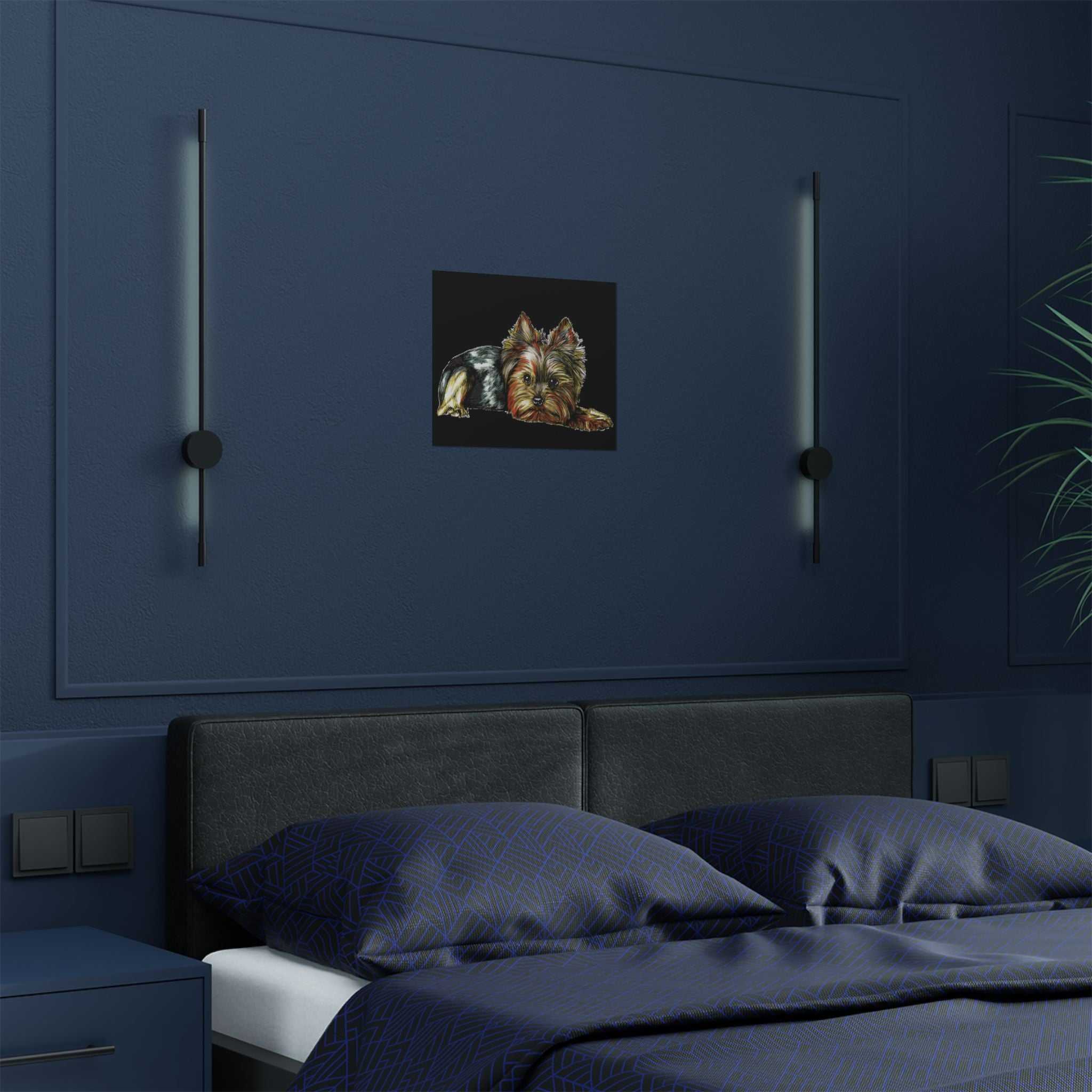 Decorate your walls with a Yorkshire Terrier Satin Poster - Perfect for Dog Lovers. A must-have for all canine enthusiasts created by Curran Artworks!