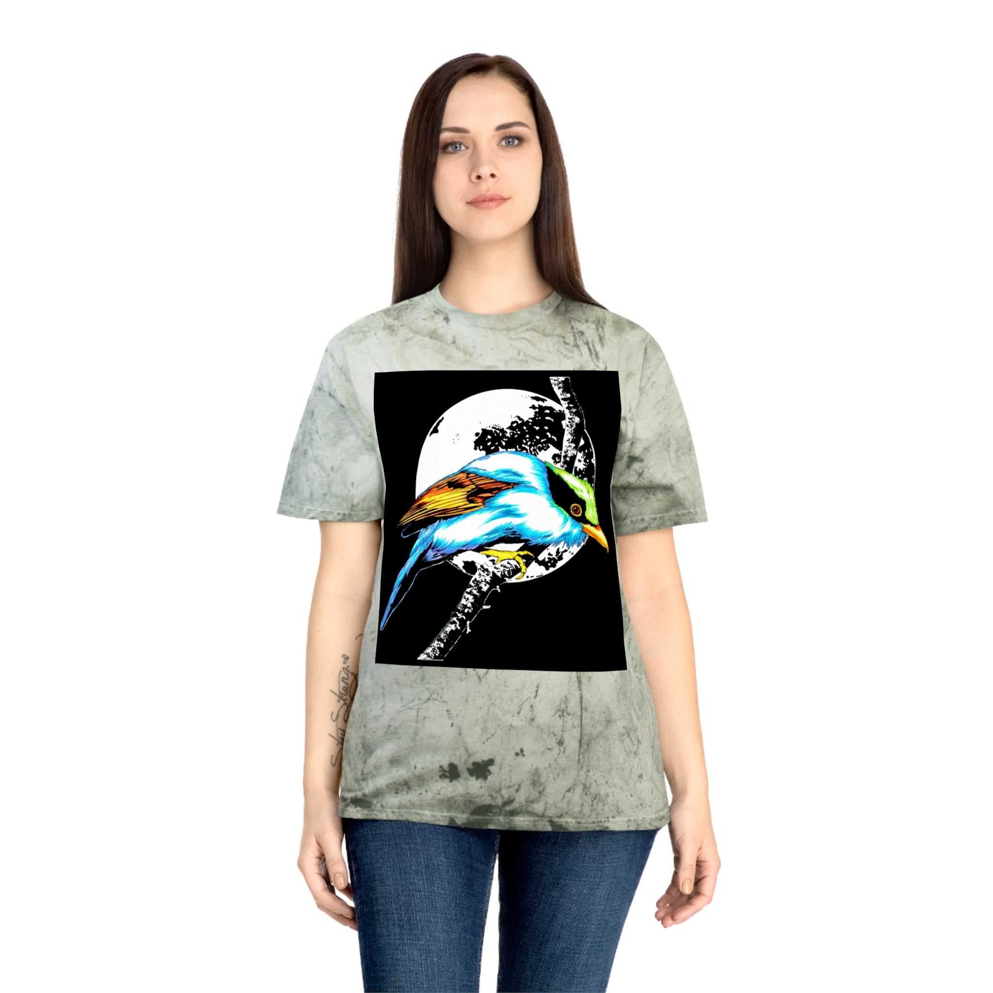 T Shirt with Vibrant Bird Design Perfect for Nature Lovers