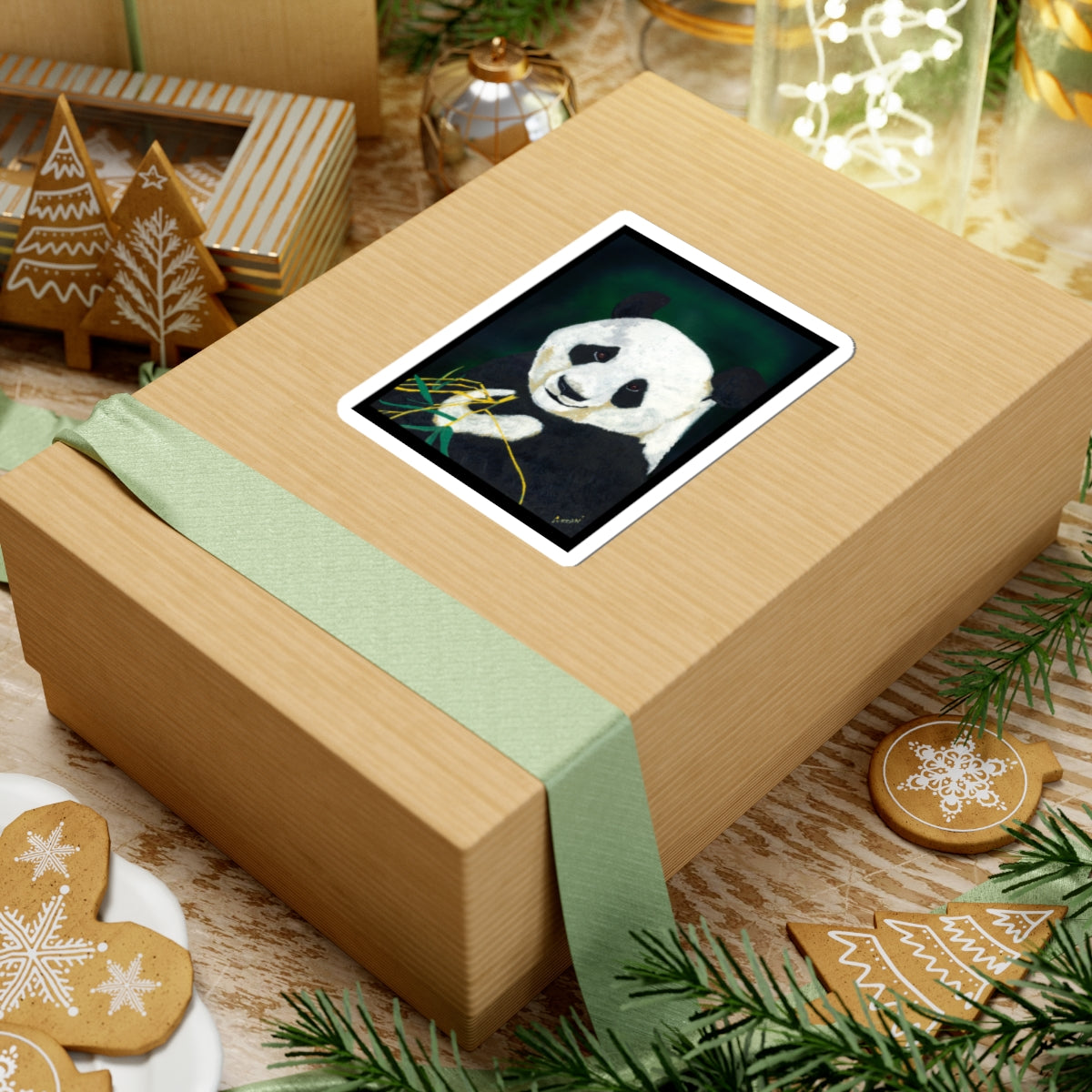 Giant Panda Kiss-Cut Stickers - for Laptops and Journals showing off the original hand painted wall art animal poster by Kris Curran at Curran Artworks.