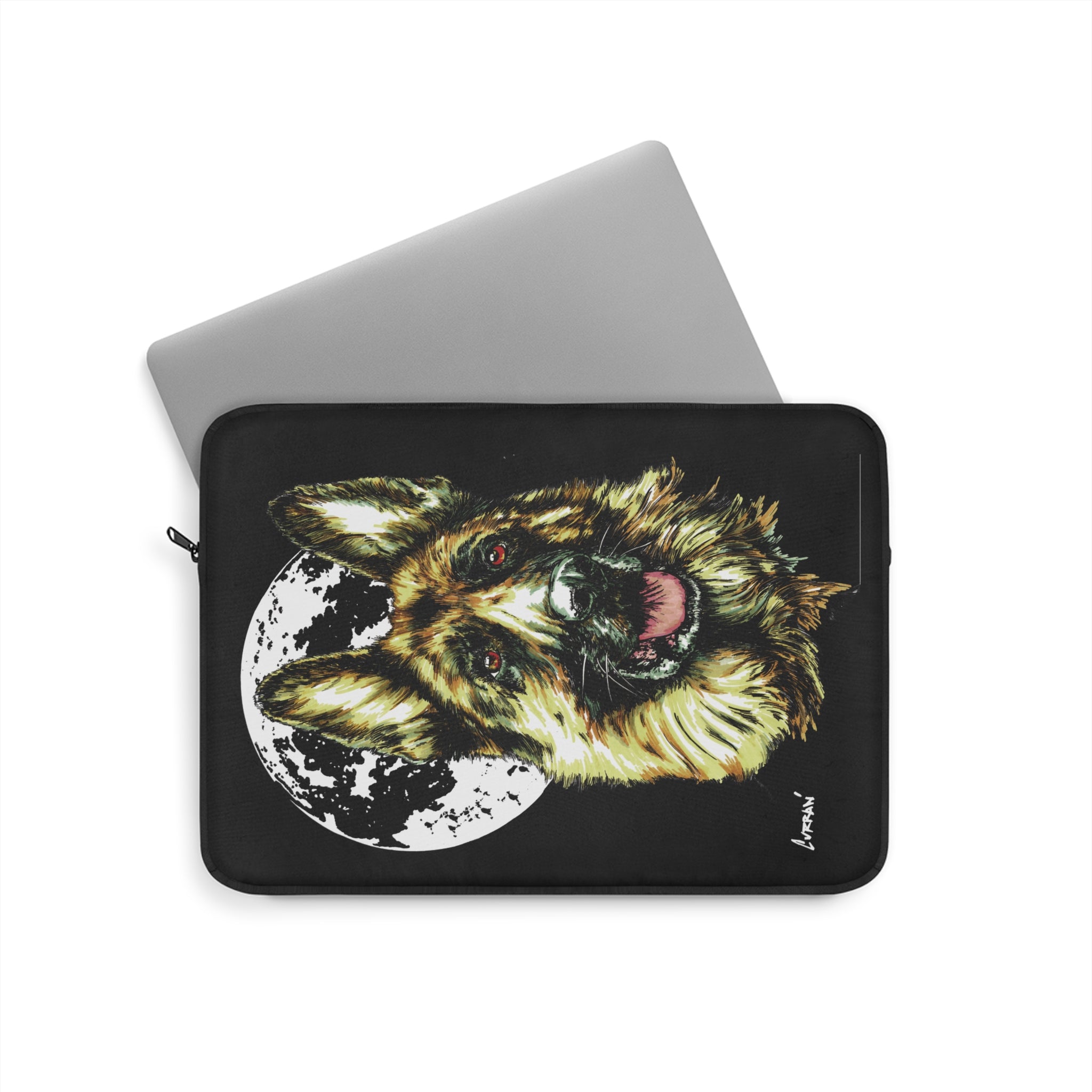 German Shepherd Moon Laptop Sleeve - Perfect for Dog Lovers, animal enthusiasts and people who just enjoy art. By Kris Curran at Curran Artworks.
