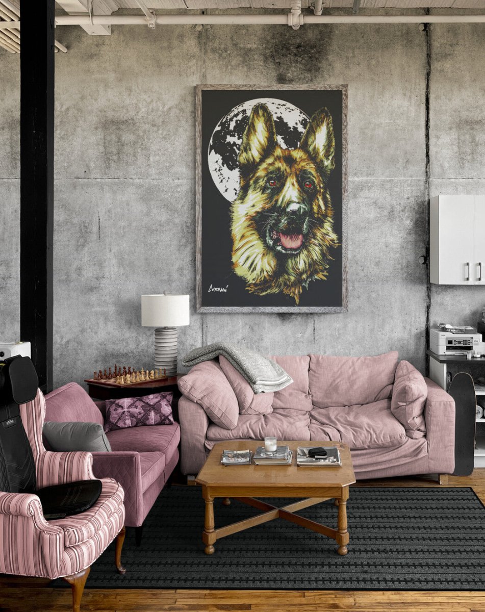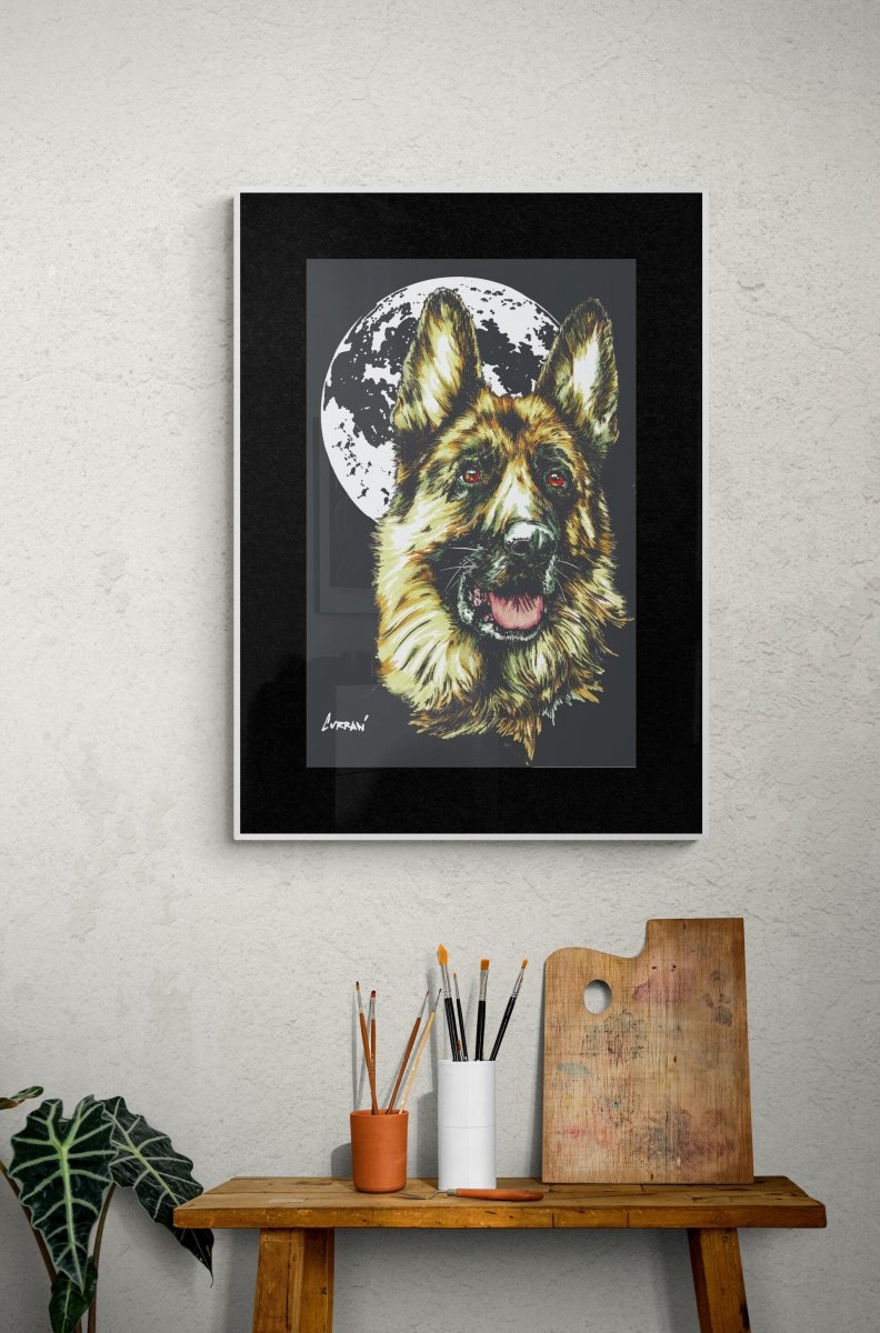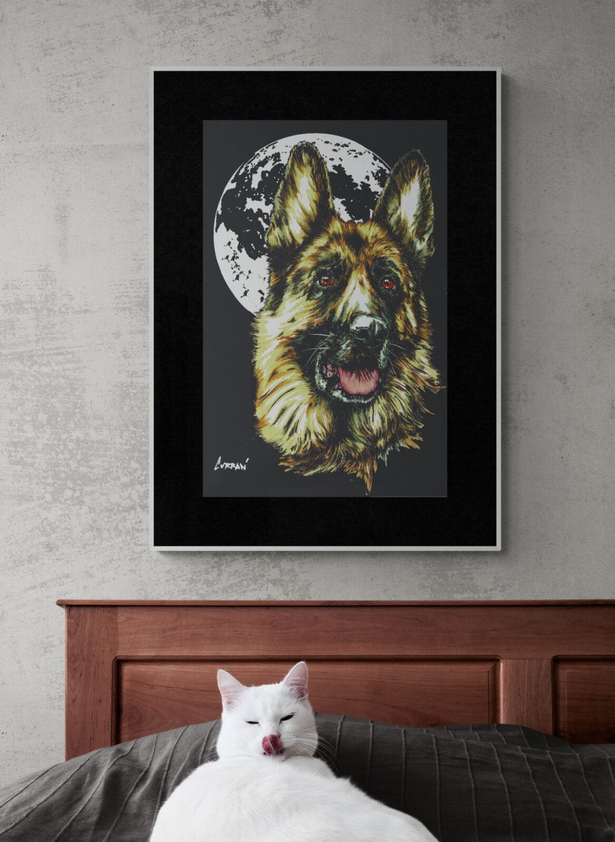 Bring home a bold and soulful representation of man’s best friend with this downloadable German Shepherd wall art, crafted with care by Curran Artworks.