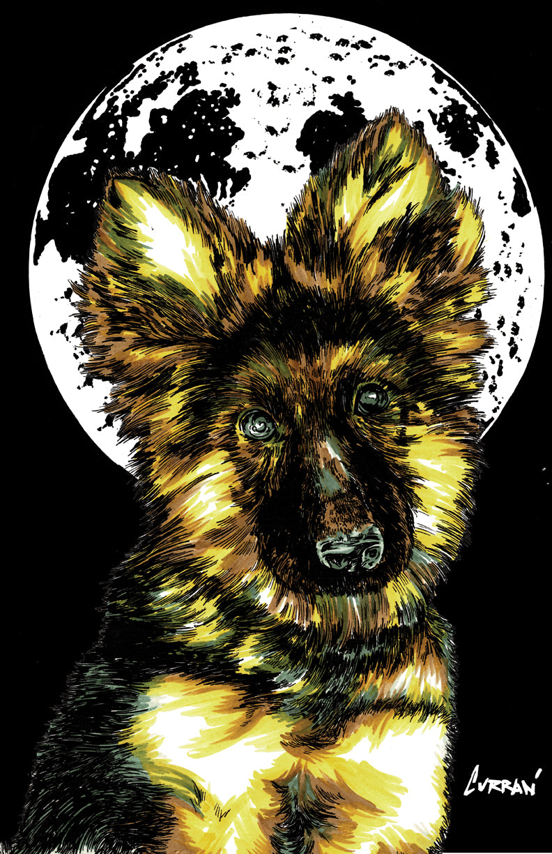 German Sheppard Puppy Hand Drawn Wall Art Poster