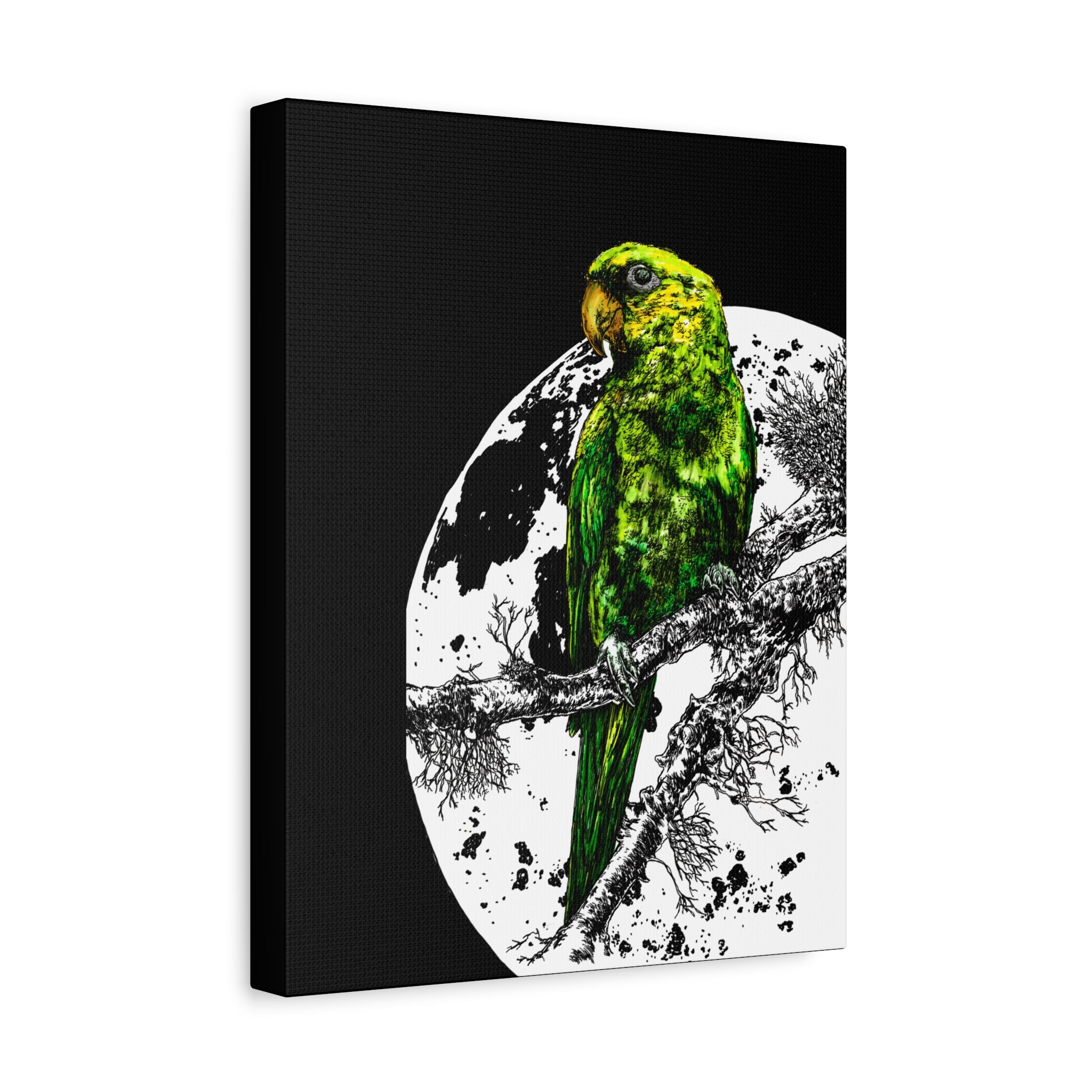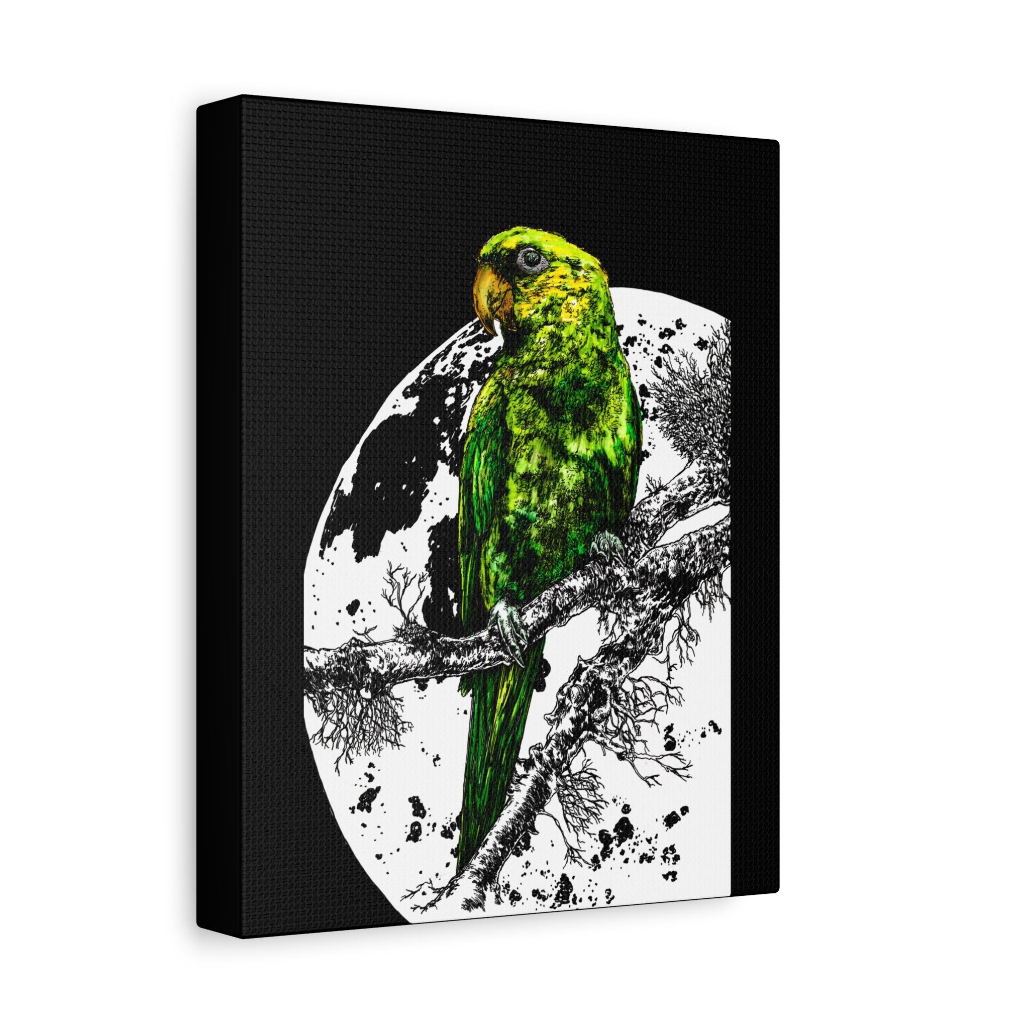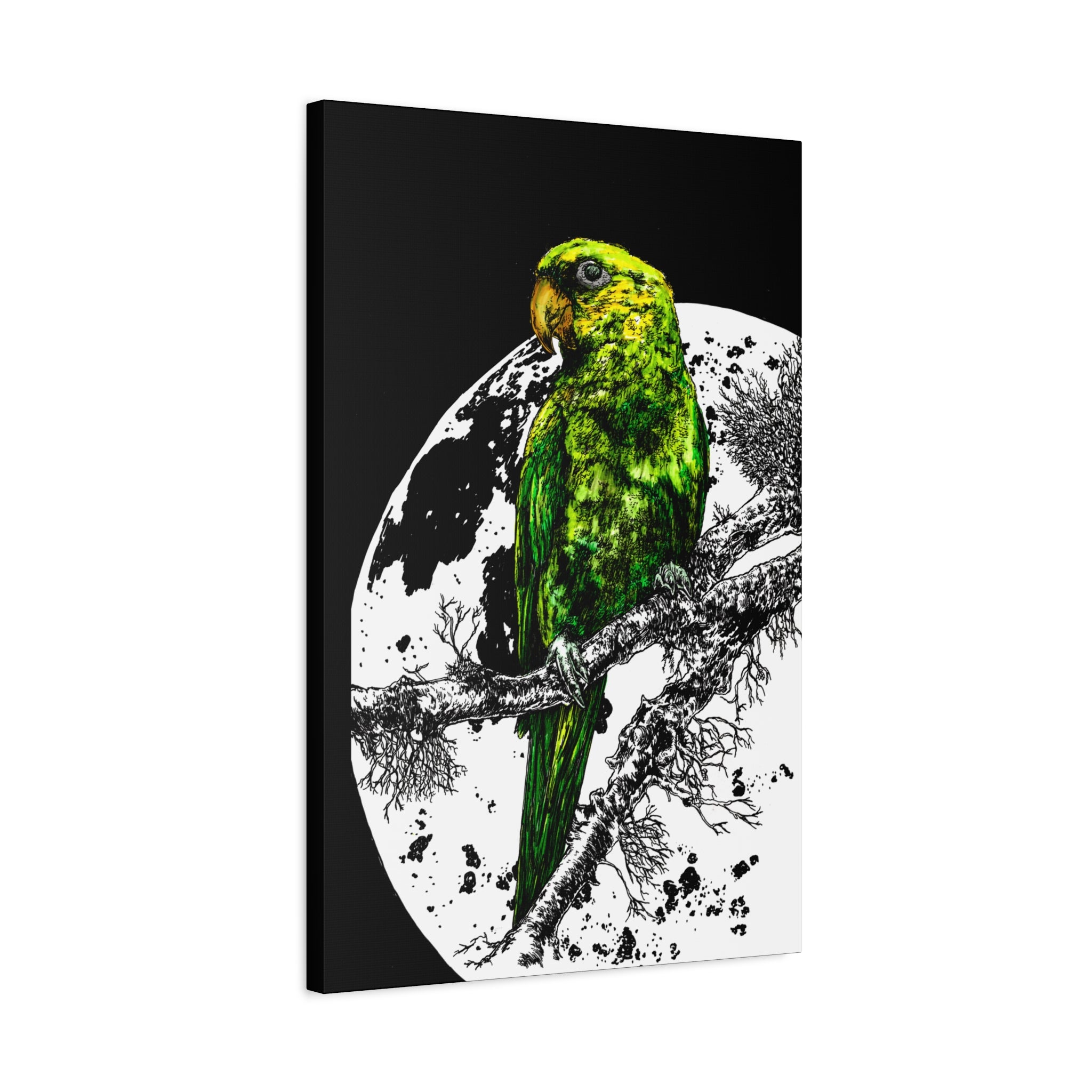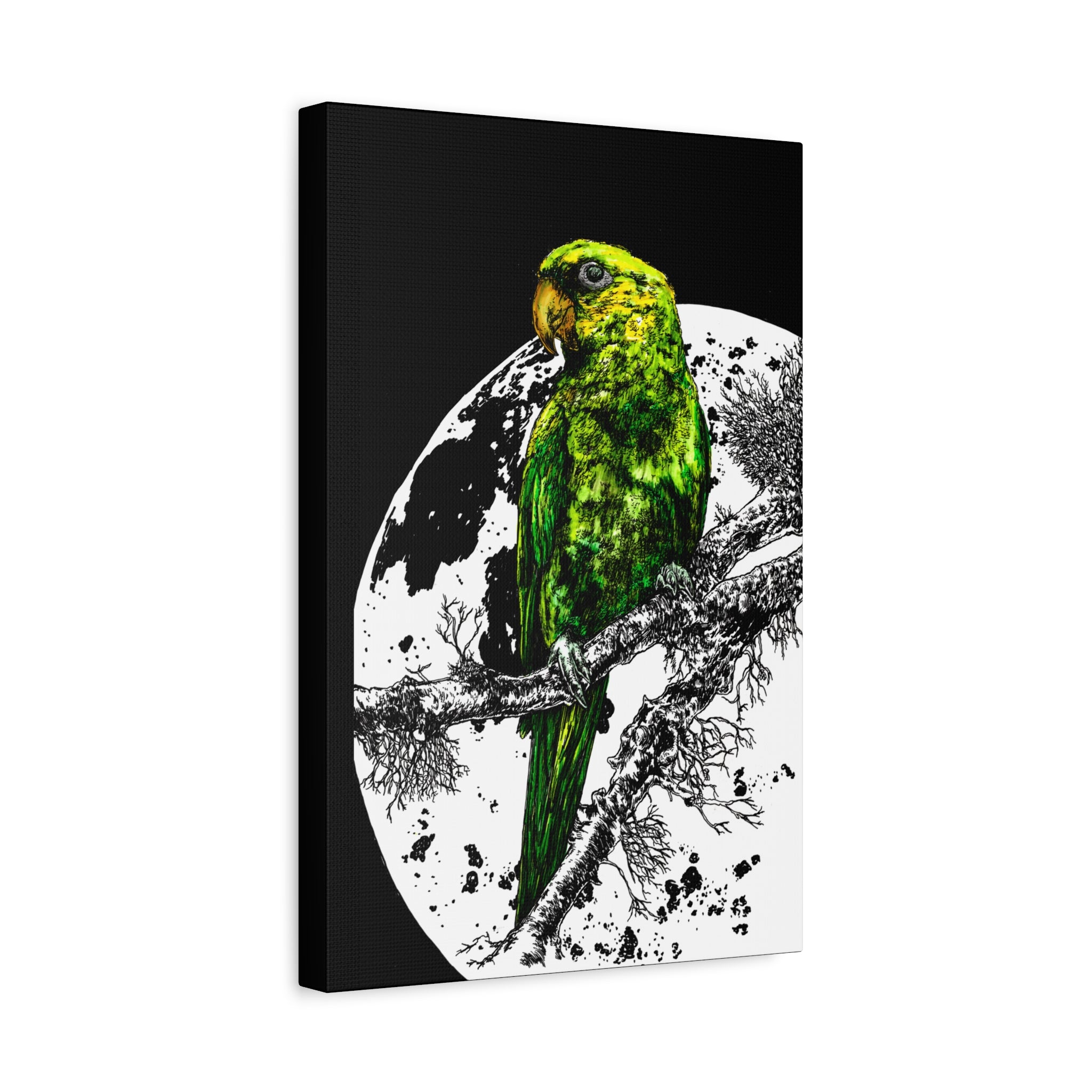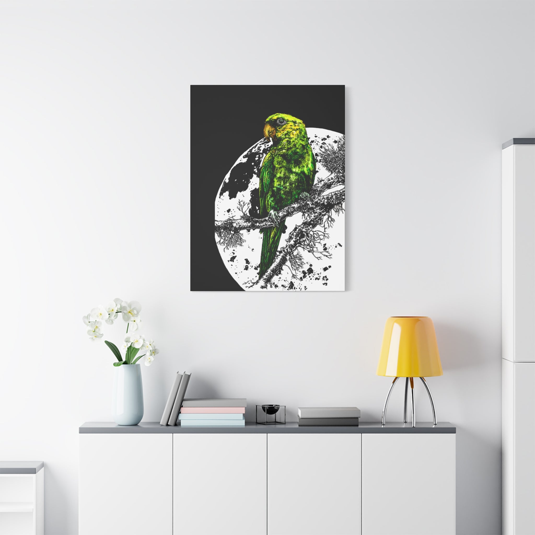 Green Parrot Wall Art Print - Matte Canvas, Stretched, Perfect for Nature Lovers as the perfect Birthday Gift or great Christmas Present. Get yours today!