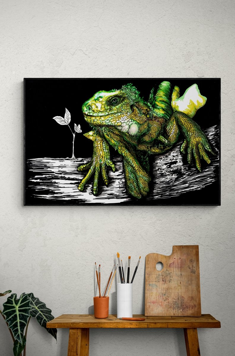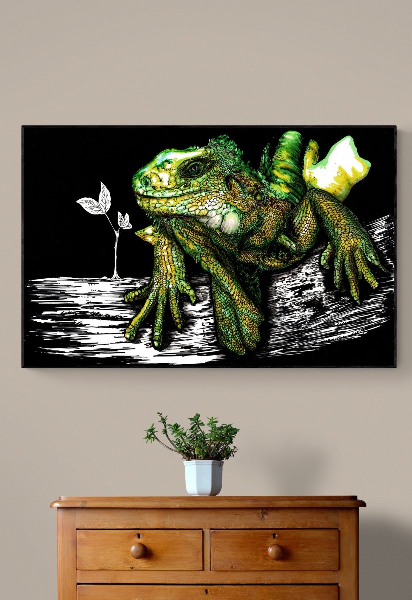 Whether you're into wildlife, reptiles, or striking pen-and-ink artwork, this downloadable Iguana art print brings bold personality to any collection.
