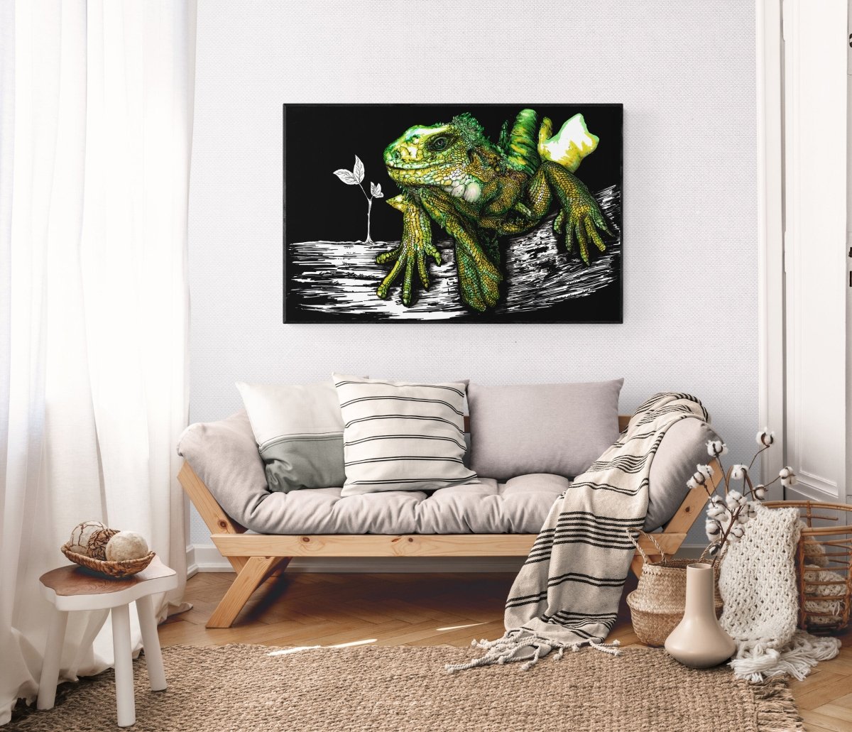Transform your space with this hand-drawn Iguana Digital Art Download by Kris Curran. Perfect for art lovers and reptile enthusiasts!