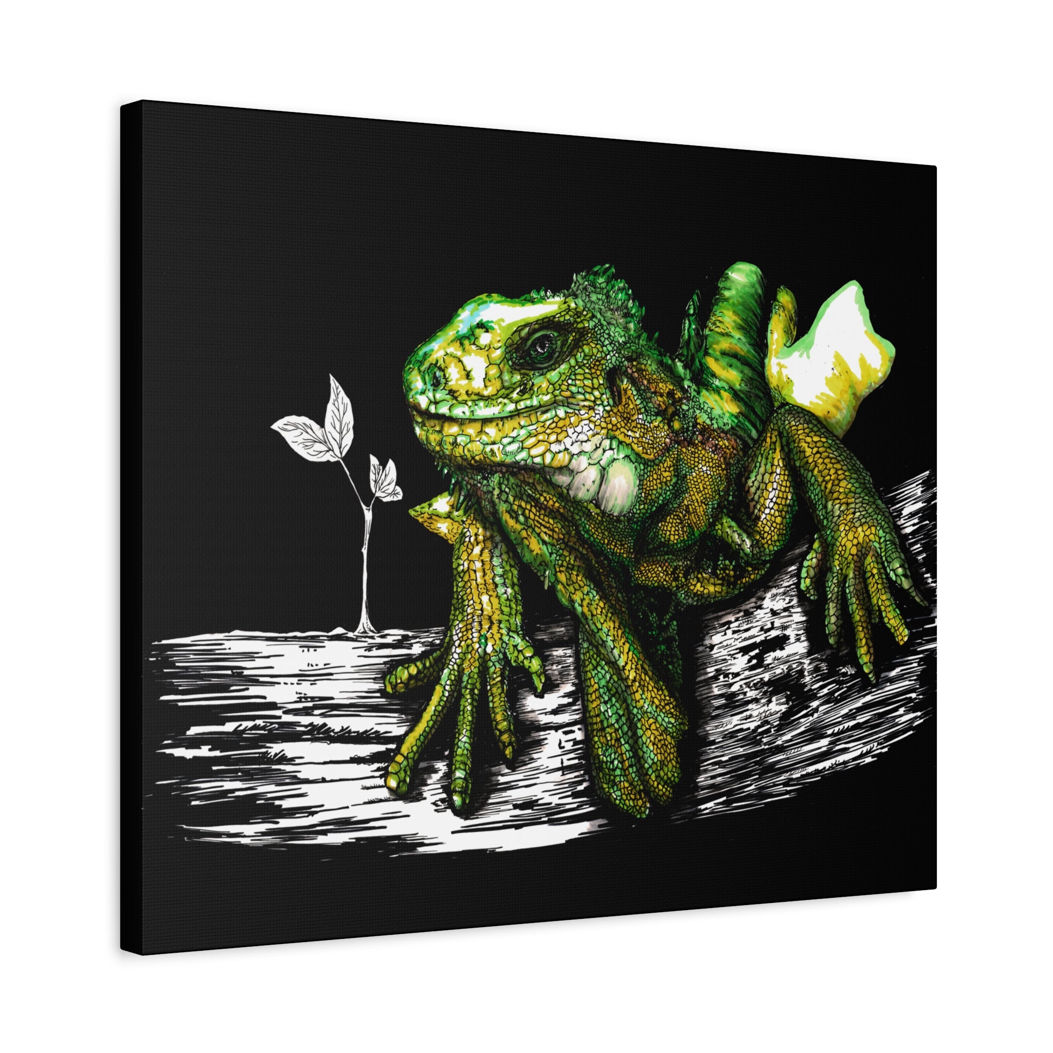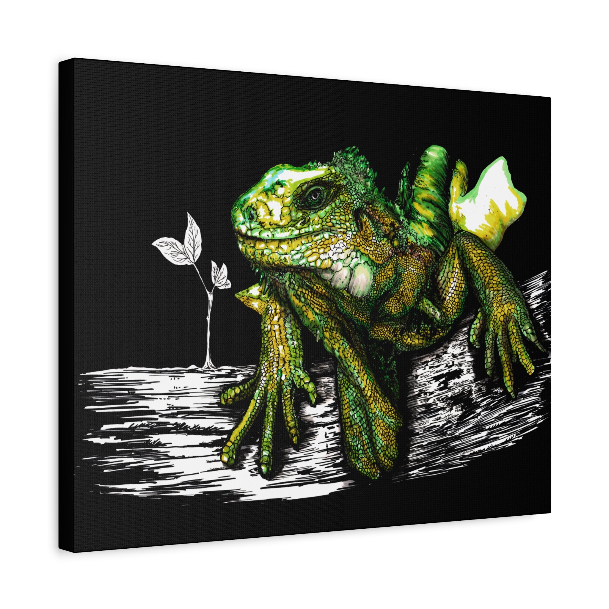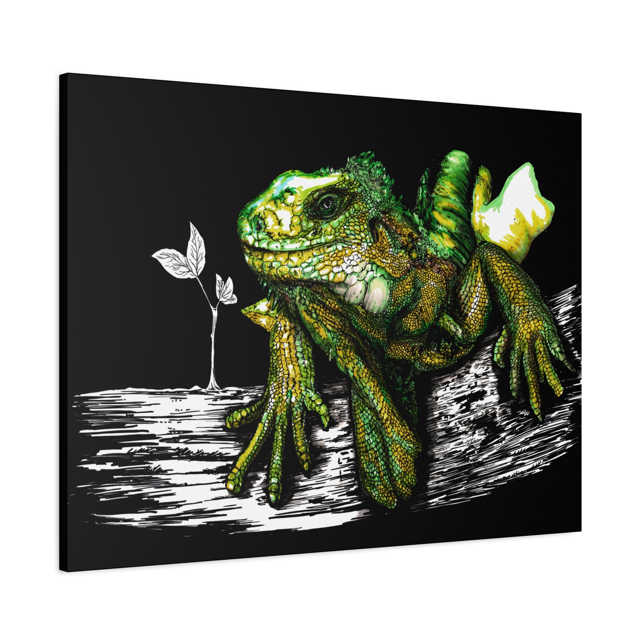 Iguana Print, Hand-Drawn Reptile Art, Lizard Wall Decor, Exotic Pet Gift, Printed on Matte Canvas, Stretched, 1.25" by Kris Curran at Curran Artworks.