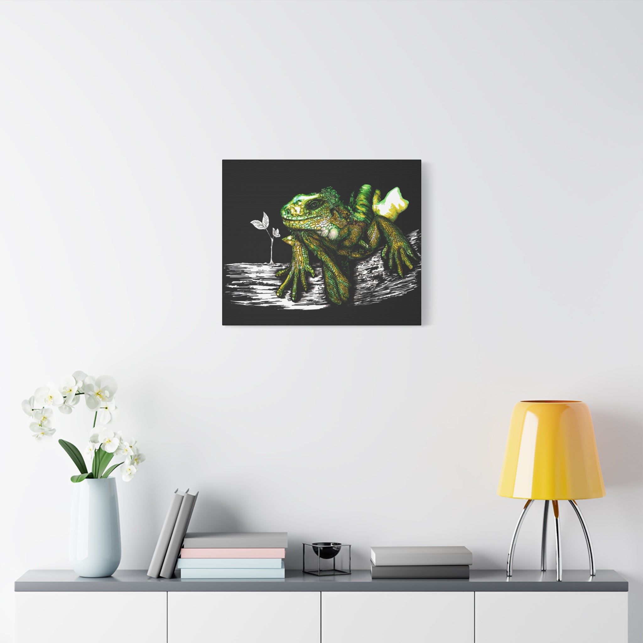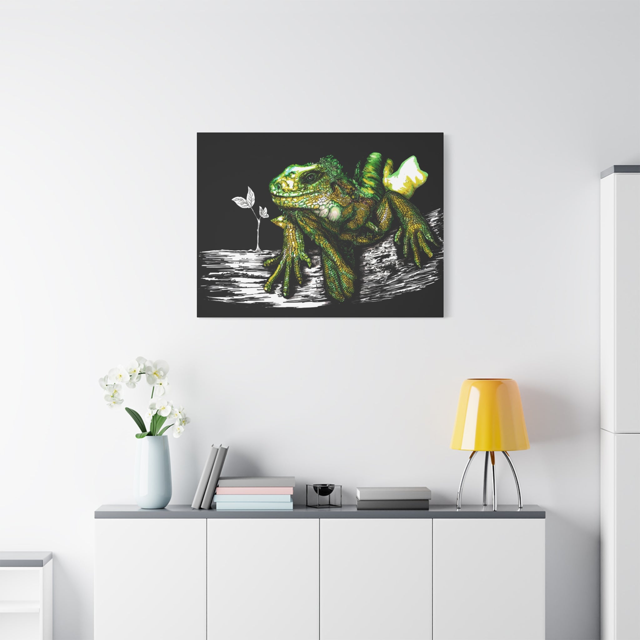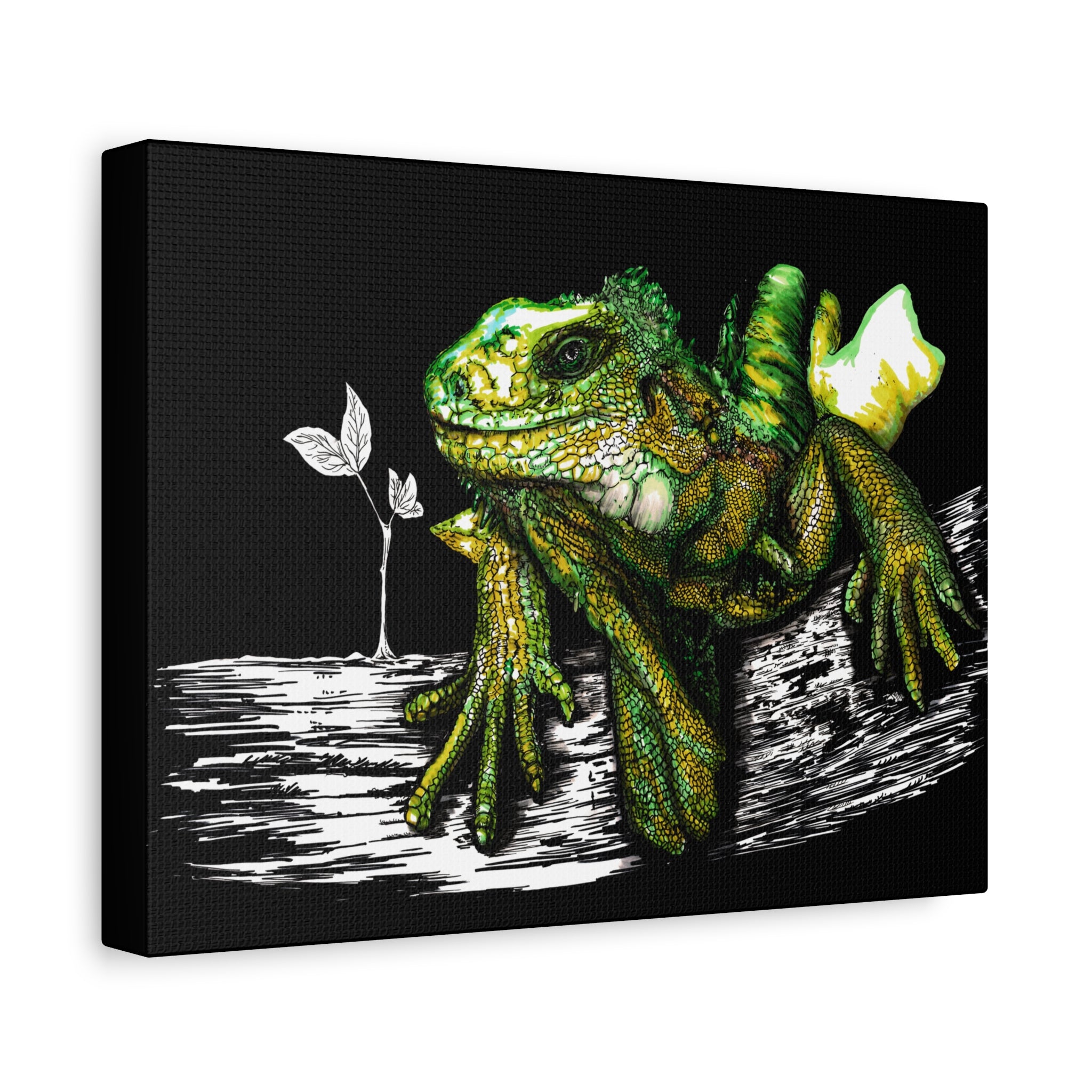Iguana Print, Hand-Drawn Reptile Art, Lizard Wall Decor, Exotic Pet Gift, Printed on Matte Canvas, Stretched, 1.25" by Kris Curran at Curran Artworks.