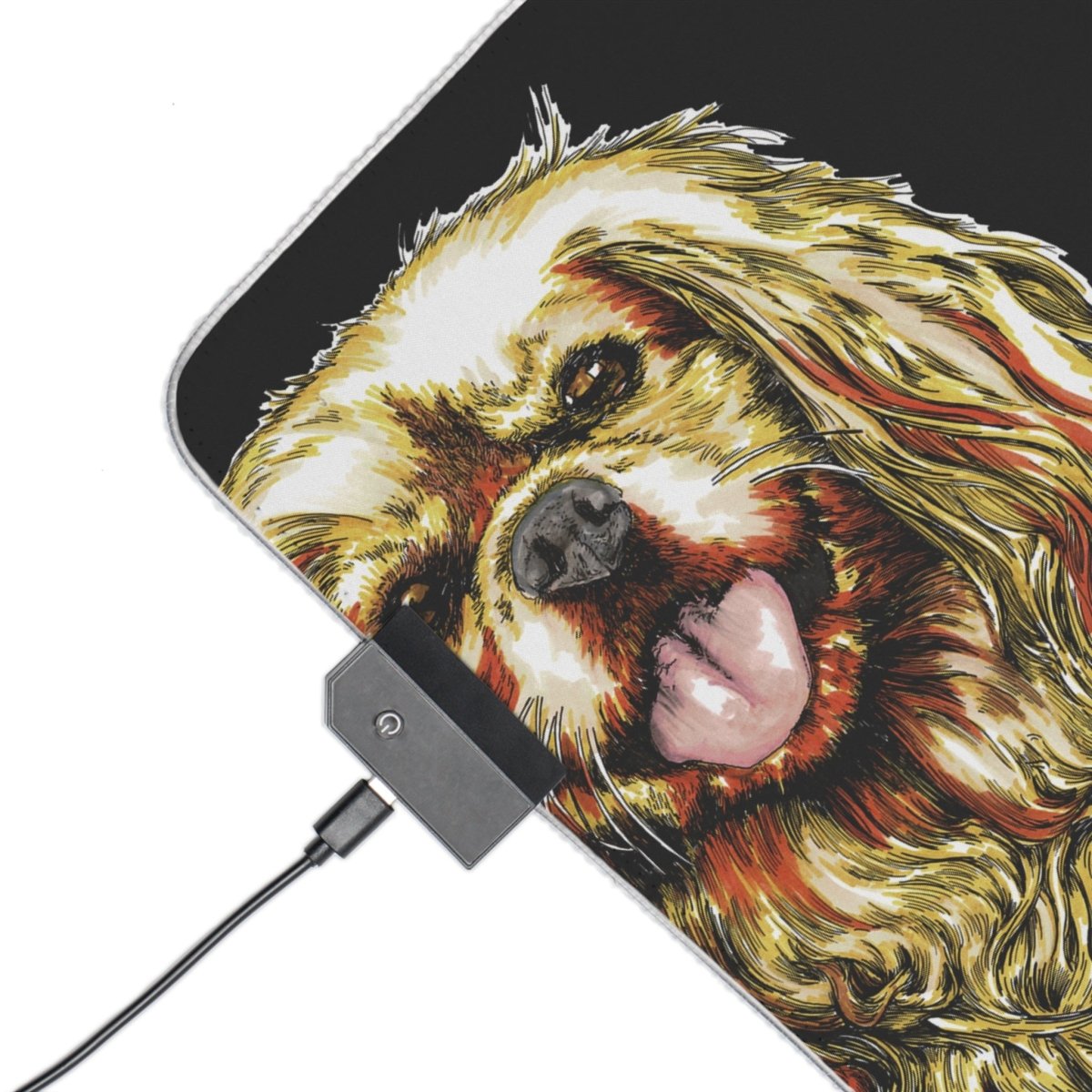 Transform your gaming setup with this vibrant Illuminated Cocker Spaniel-Themed Gaming Mouse Pad by Kris Curran at Curran Artworks.Â