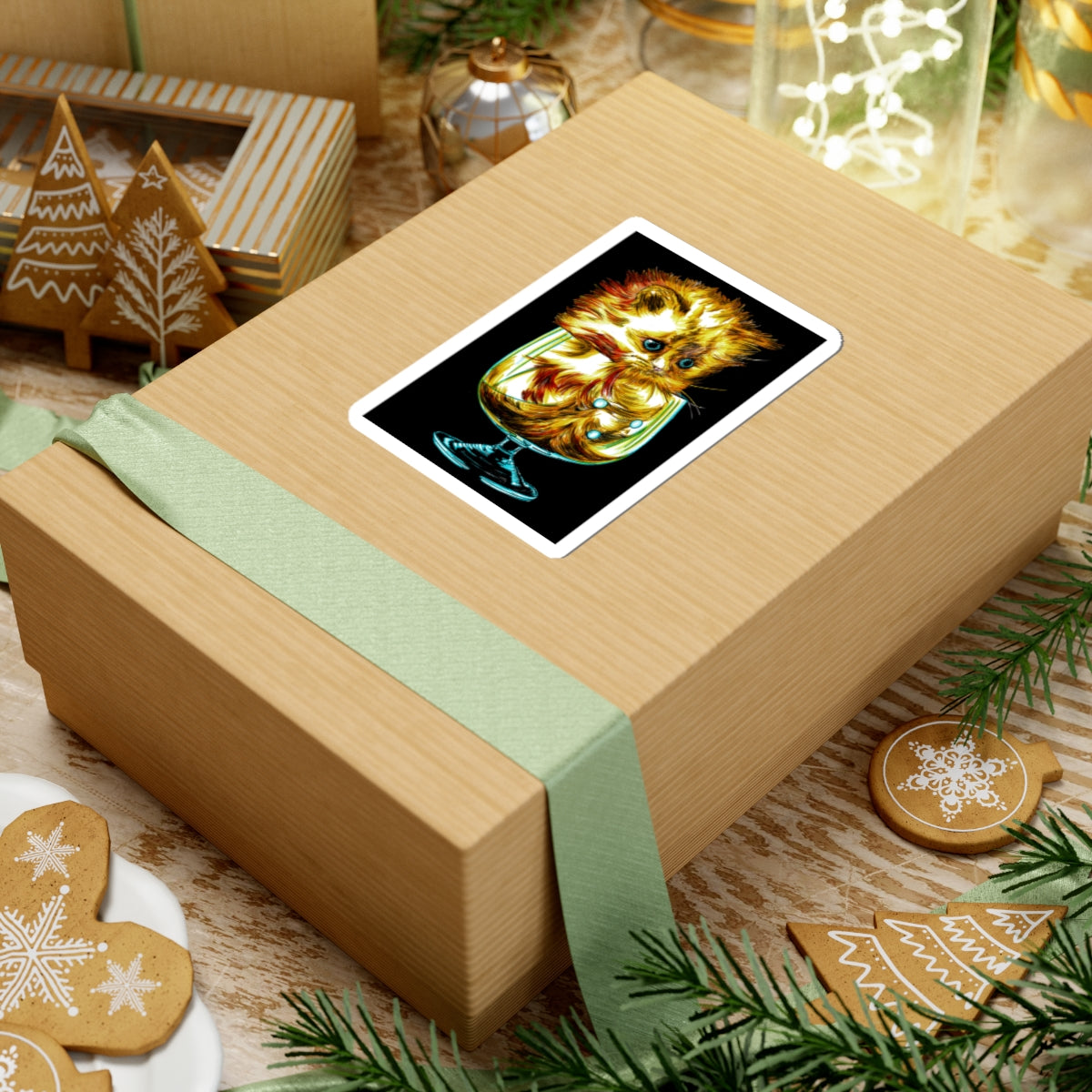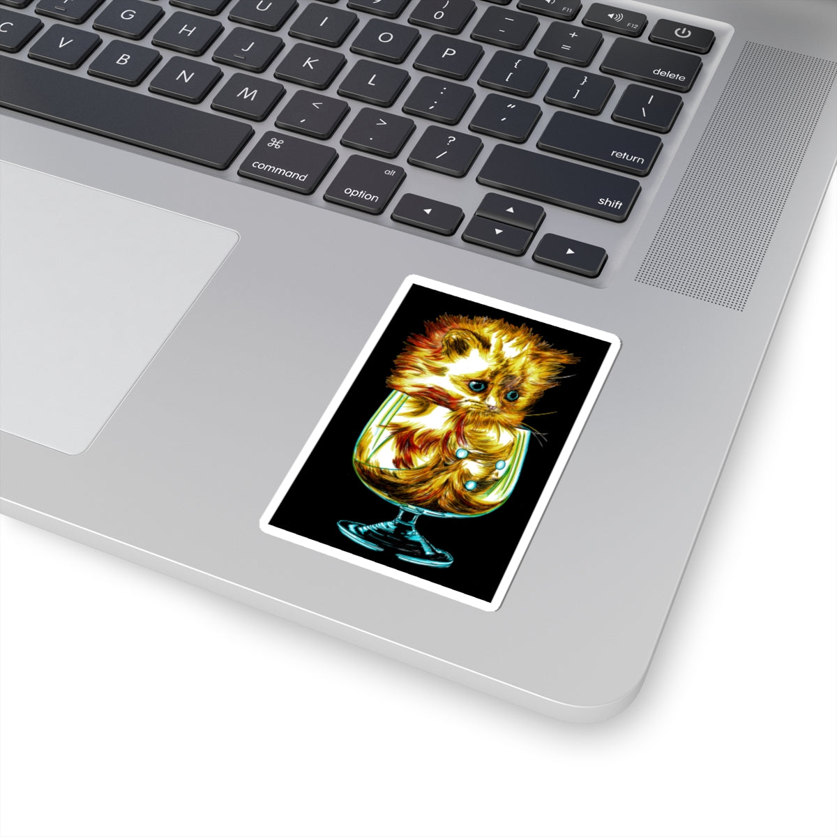 Kitten Kiss-Cut Stickers - Perfect for Pet Lovers and Unique Gifting featuring the original hand drawn kitten in a glass wall art poster.