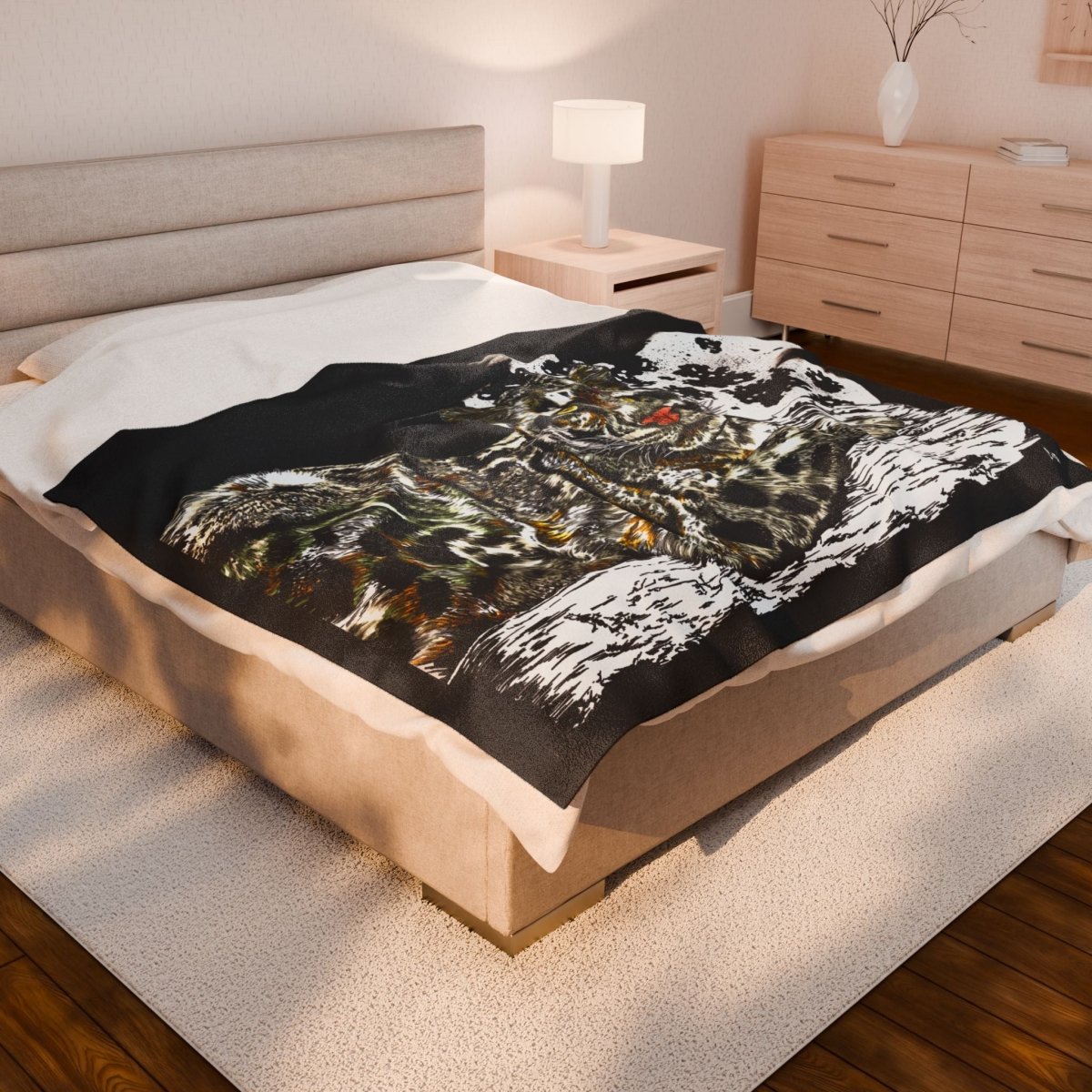 Wrap yourself in cozy comfort with this velveteen plush blanket. The striking design adds a pop of art to your living space, making it an excellent accent piece. Perfect for snuggling up on the couch during movie nights, this blanket brings warmth and style to any occasion. It’s ideal for anyone who loves unique home decor or seeks an extra layer of comfort during colder months. Great for gifting during holidays like Christmas, cozy nights in, or housewarming celebrations, this blanket is sure to delight friends and family alike!