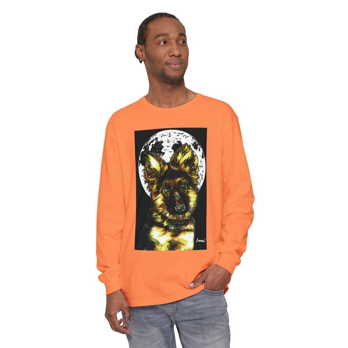 Get cozy with our Moonlit German Shepherd Puppy Long Sleeve Tee, the perfect blend of style and comfort for dog lovers. Shop now!