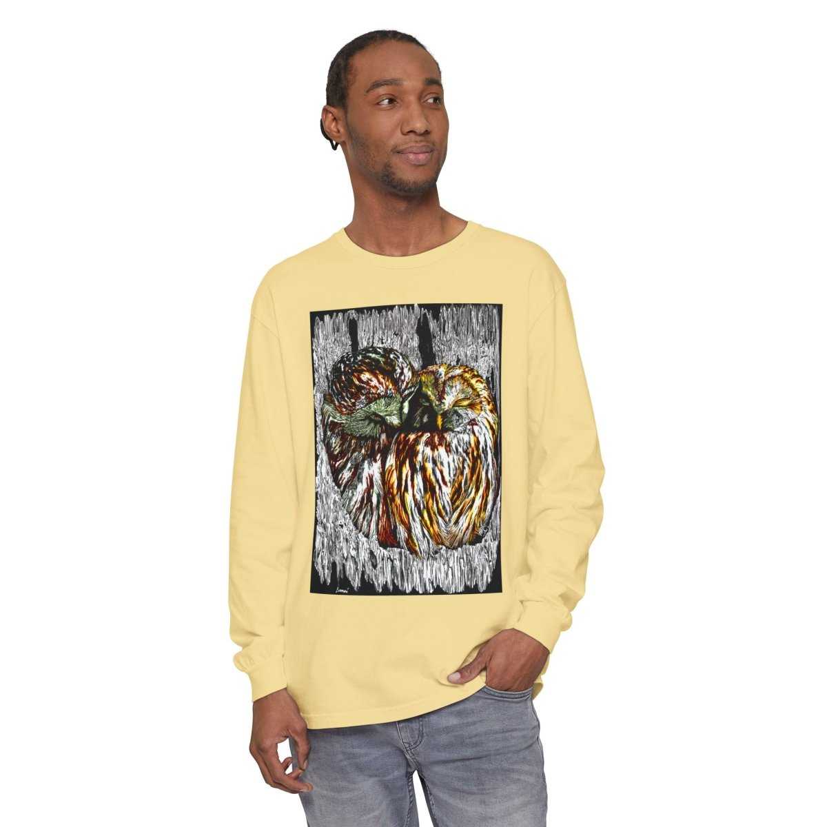 Introducing our Garment-Dyed Long Sleeve T-Shirt, a perfect blend of style and comfort. This shirt boasts a unique design that radiates a cozy and artistic vibe, making it an ideal choice for casual outings, cozy nights in, or creative gatherings. It’s perfect for art lovers, as its intricate design showcases a passion for creativity.