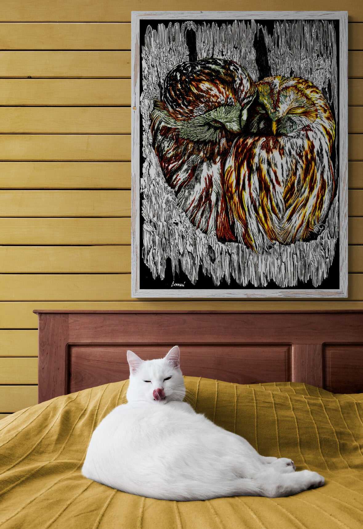 Whether viewed as a celebration of love, friendship, or soulful connection, Kindred Spirits is a powerful and peaceful statement piece. It captures the timeless beauty of the natural world and reminds us of the comfort found in togethernessâeven in the stillest hours.