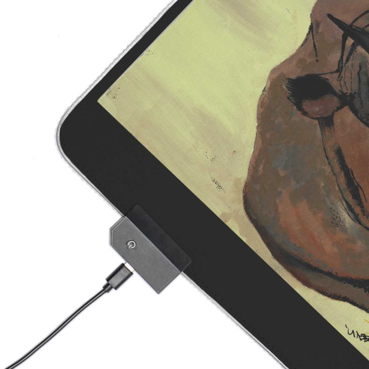 Unleash your gaming potential with our Premium LED Gaming Mouse Pad with Rhino Design by Kris Curran at Curran Artworks - Perfect for Gamers.