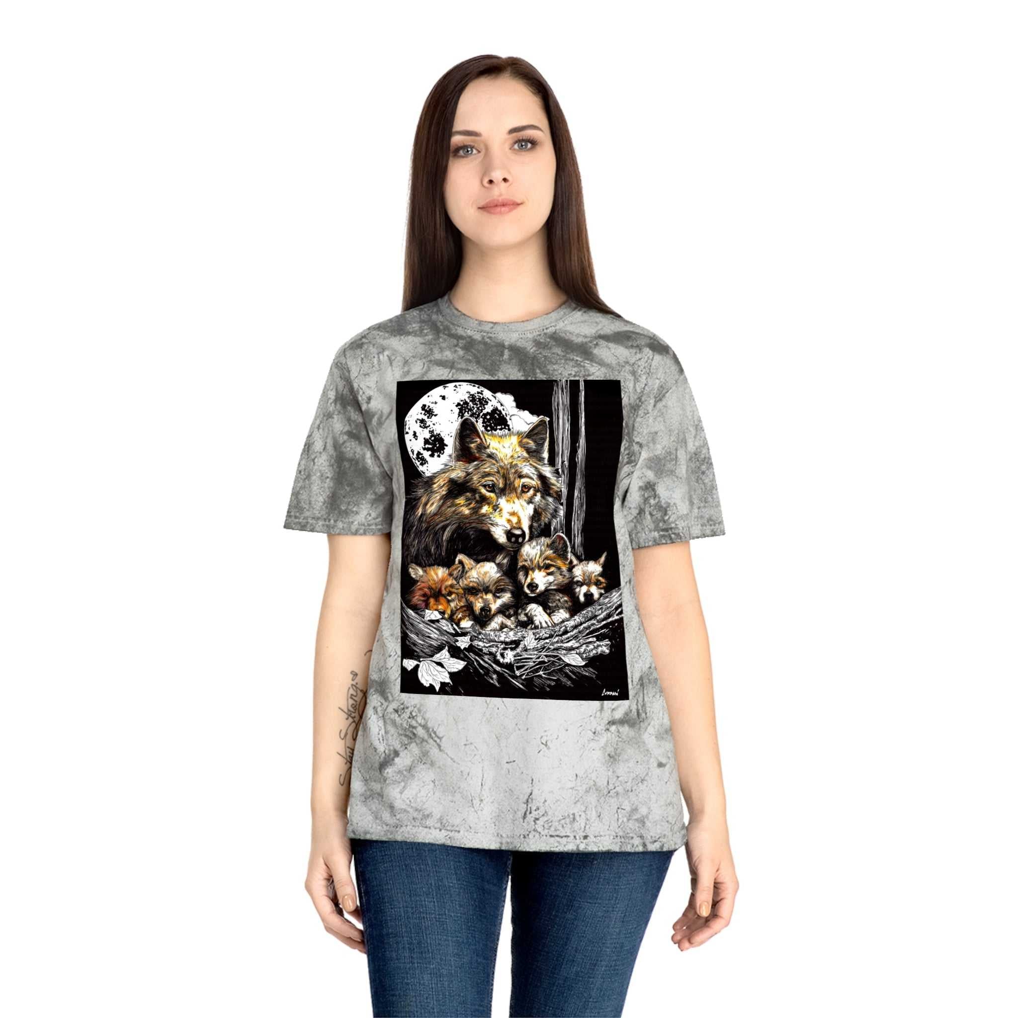 Wolf Family Unisex Color Blast Shirt Nature Lover Gift featuring the original hand drawn art perfect gift for Birthdays or Christmas.
