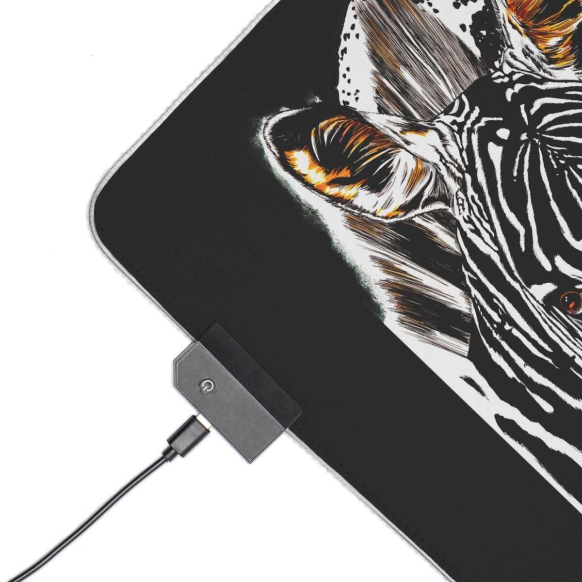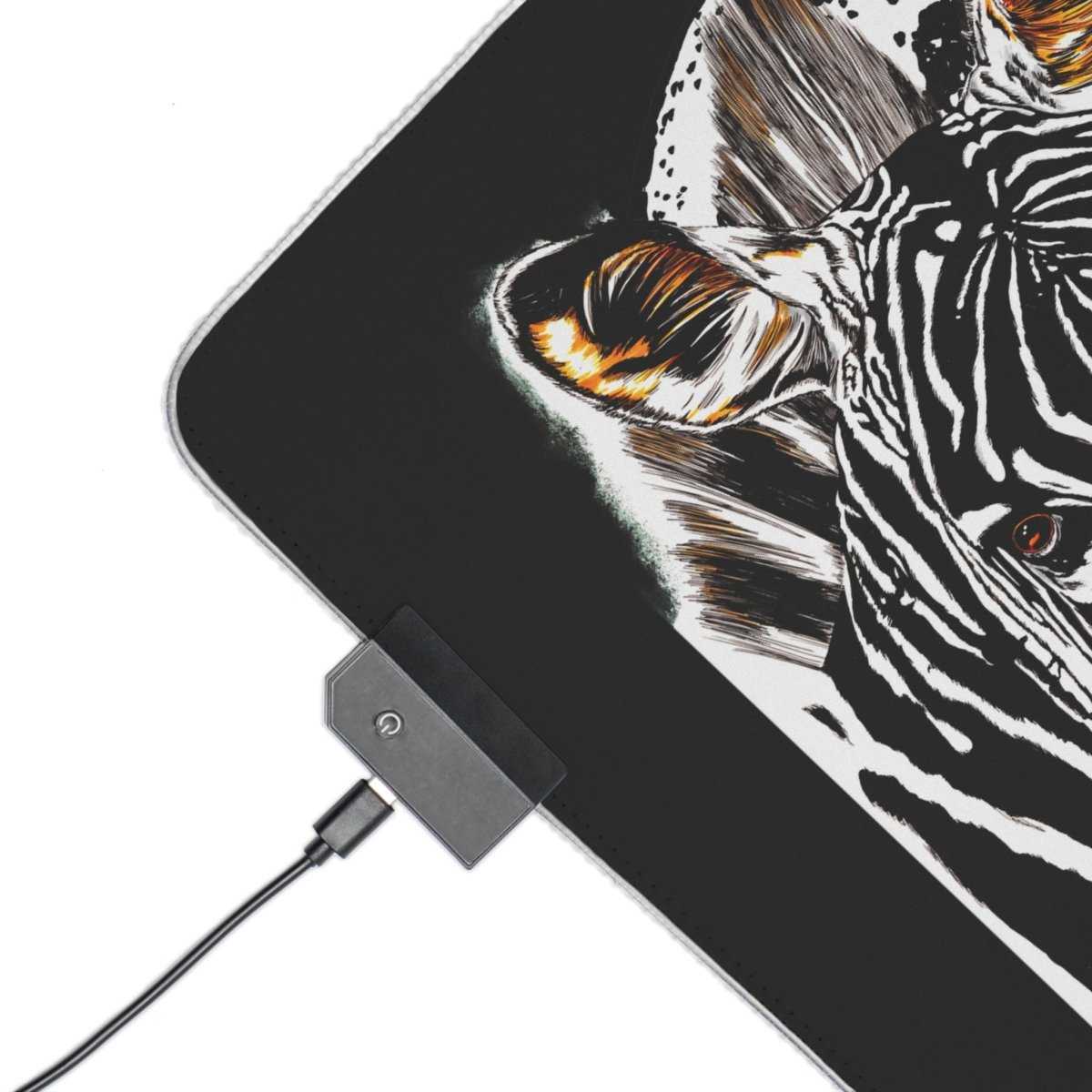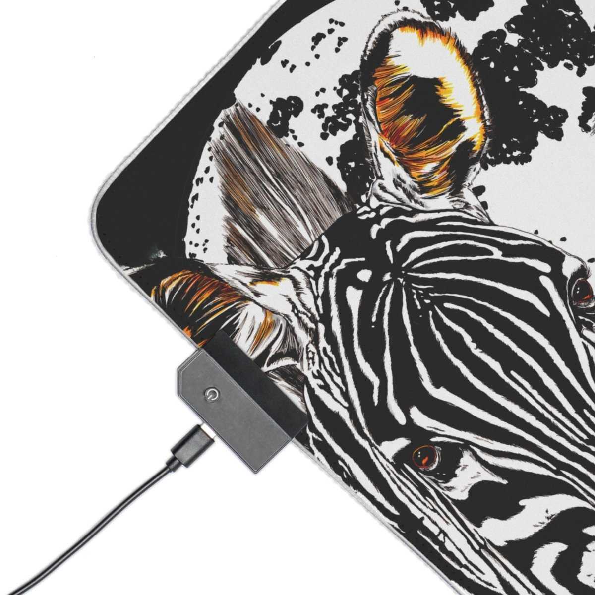 Zebra LED Gaming Mouse Pad Perfect Birthday Gift or Christmas Present for Animal Lovers by artist Kris Curran at Curran artworks.
