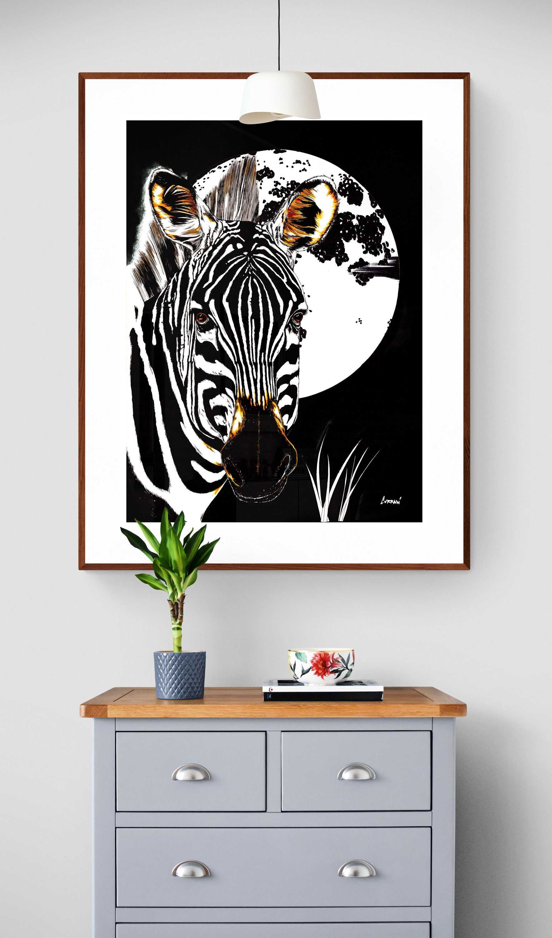 âMoonlit Stripes â Transform your space with our stunning Zebra Original Hand Drawn Wall Art Poster. Elevate your walls with this unique, handcrafted piece.â